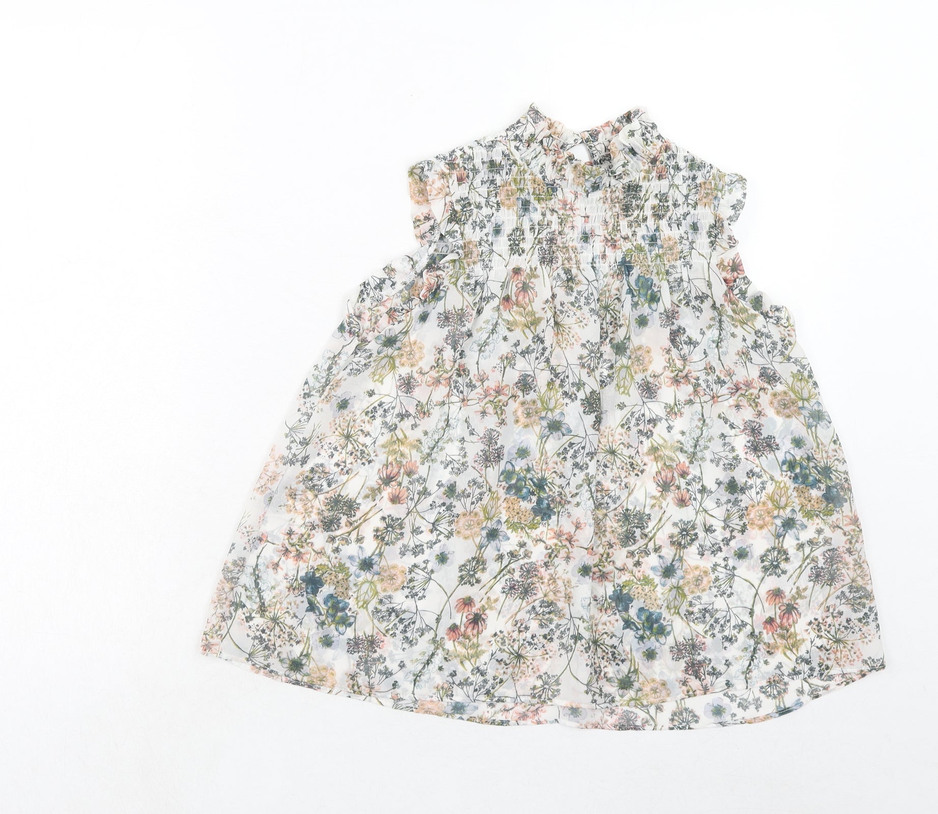 Girls Multicoloured Floral Polyester Basic Blouse Size 8 Years Mock Neck Button