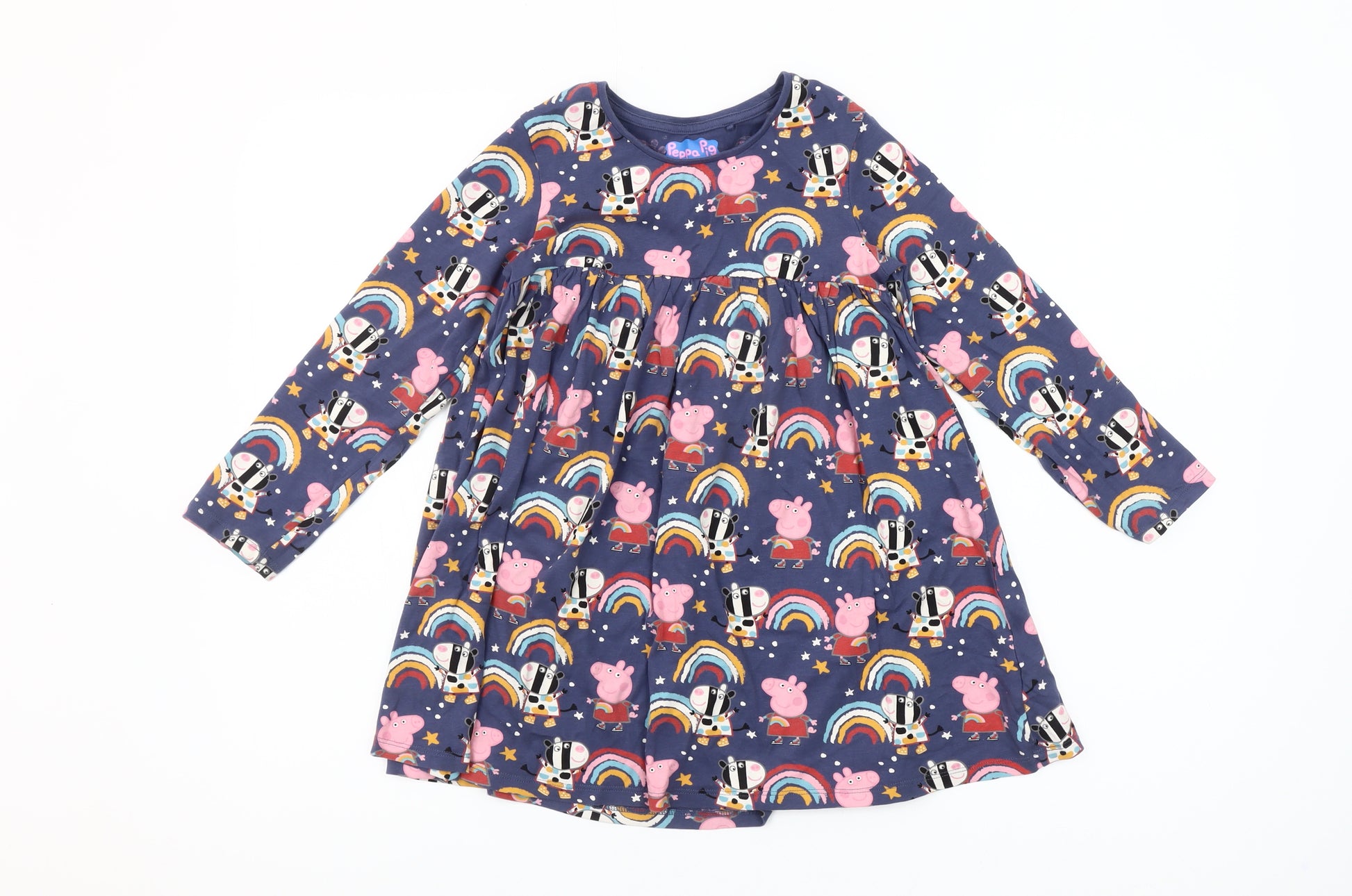 Next Girls Peppa Pig Multicoloured Cotton Long Sleeve Skater Dress 5-6Y
