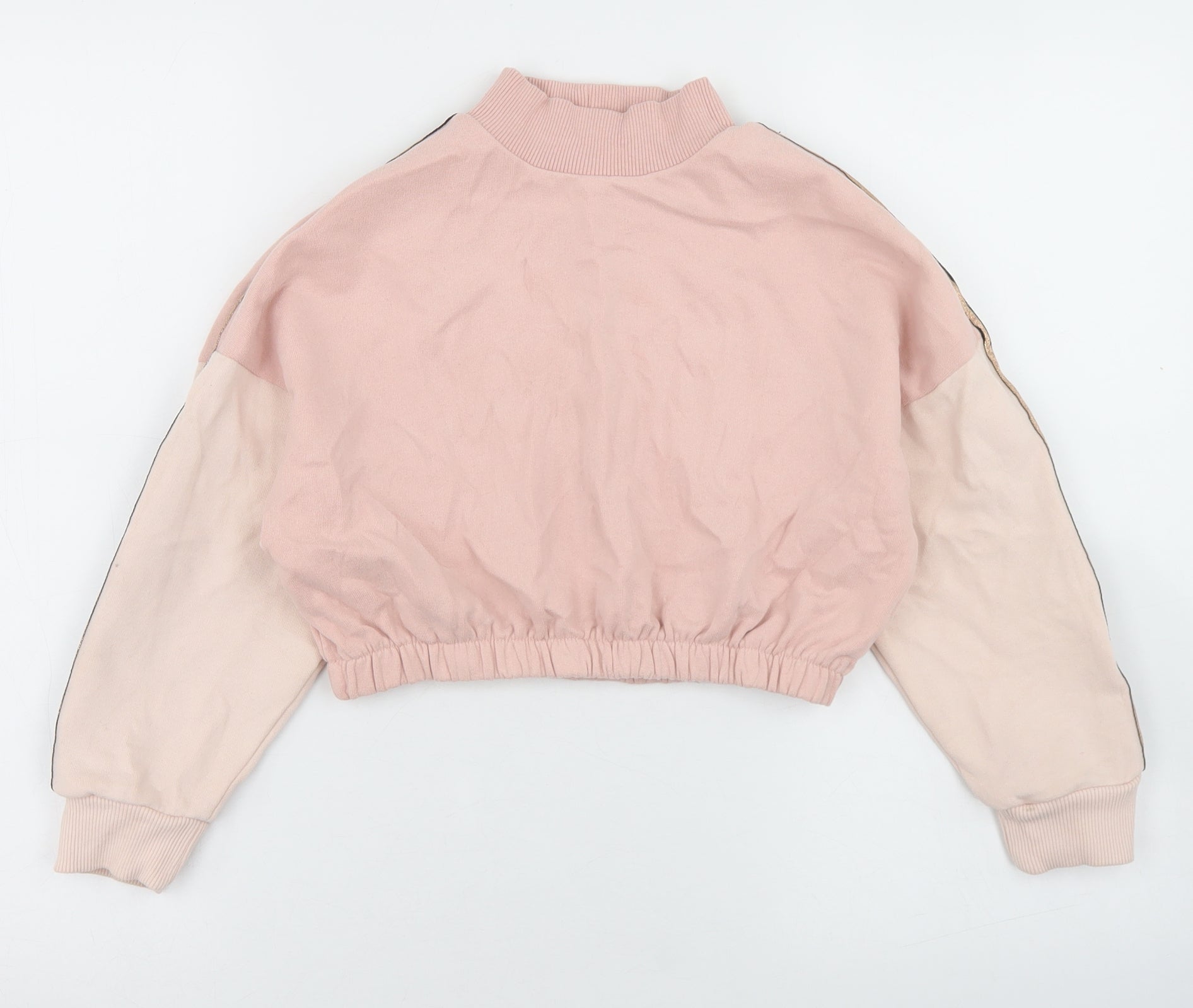 Girls Pink Colourblock Cotton Pullover Sweatshirt Size 8 Years - Cropped