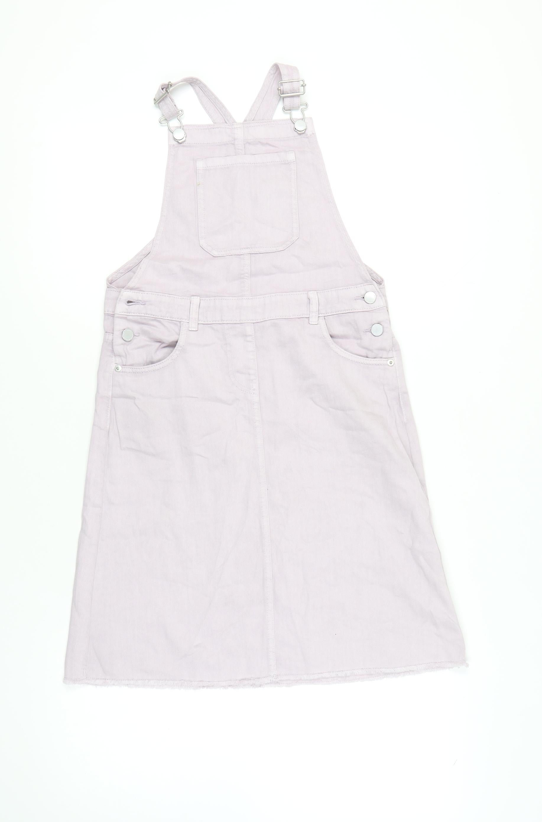 Next Girls Pink Pinafore Dress 12 Years - Cotton, Sleeveless, Button