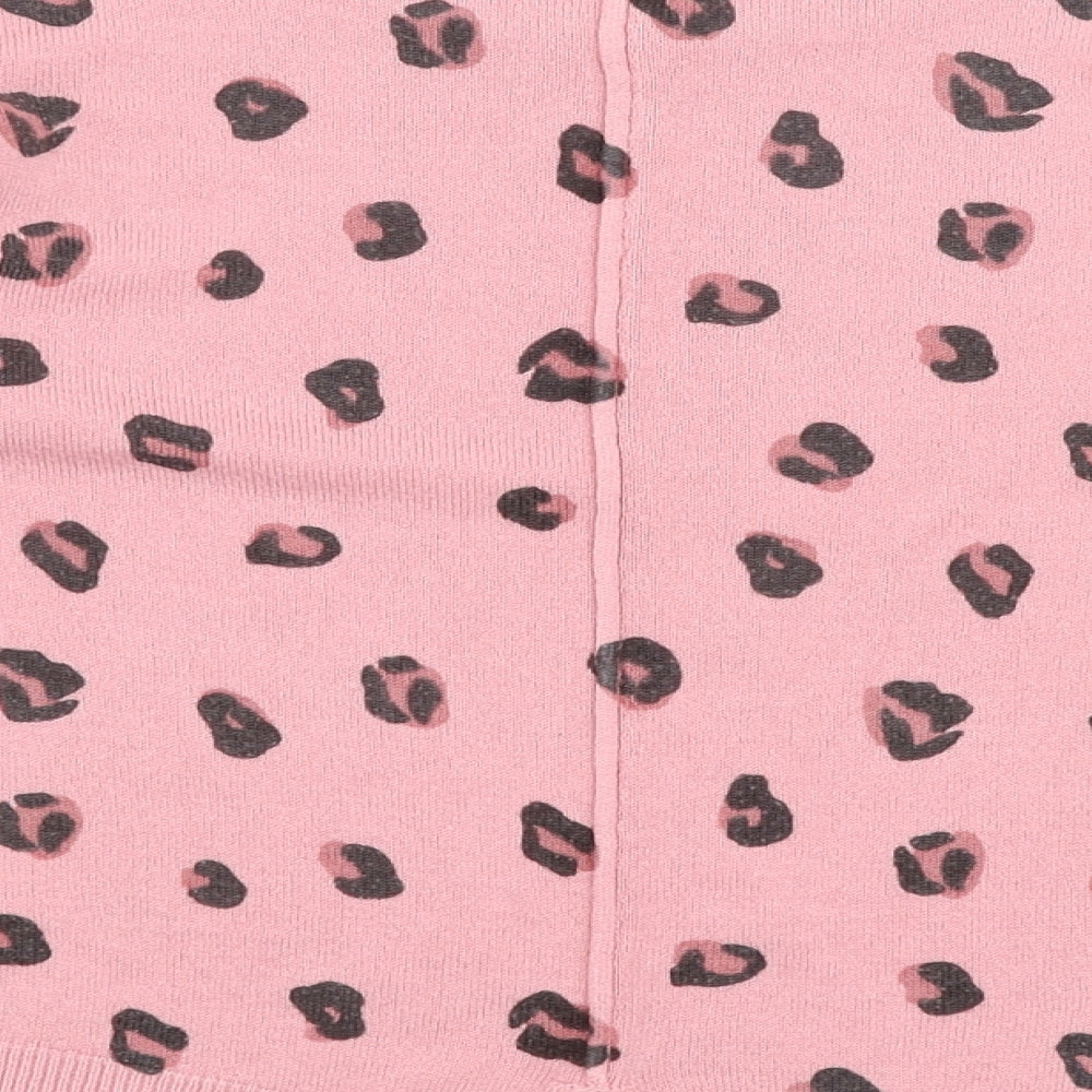 Girls Pink Round Neck Animal Print Acrylic Pullover Jumper Size 9 Years Pullover