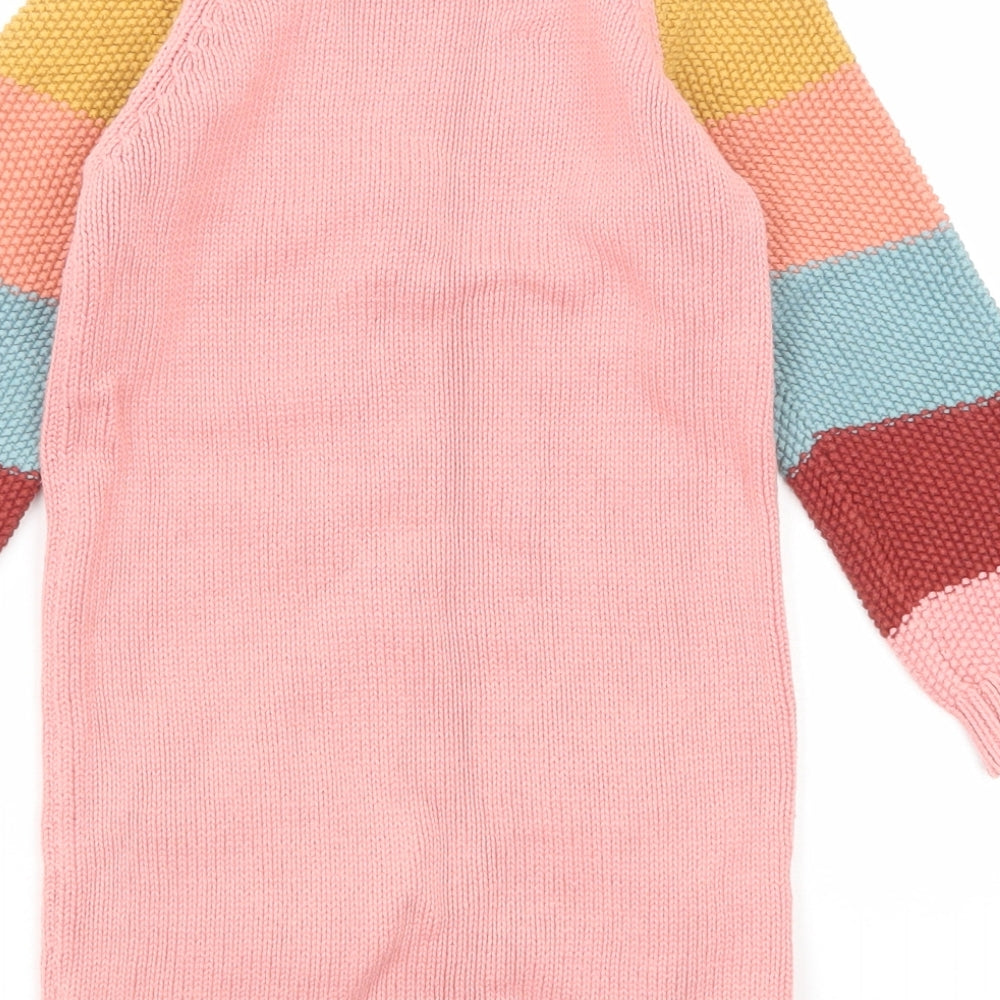 Girls Pink Round Neck Striped Cotton Pullover Jumper Size 3-4 Years Pullover - Rabbit Pattern