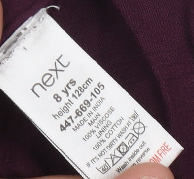 Enhance your child's wardrobe with this adorable Next girls' playsuit, perfect for casual gatherings or fun parties. The rich purple colour provides a lovely background for the intricate floral pattern that dances across the fabric, offering a vibrant touch to a classic style. Crafted from 100% viscose, this playsuit ensures comfort with its lightweight and breathable material, ideal for all seasons. Featuring long sleeves, it offers added warmth and coverage, suitable for cooler days or evenings.Button closures at the front and an elasticated waist provide ease of wear and a secure fit. Despite its intricate appearance, the playsuit is conveniently machine washable, promising easy care and maintenance, ensuring that it remains a staple in your child's clothing collection. The playsuit is in excellent condition, with no visible signs of wear, making it a fantastic buy at a pre-loved price.This playful design with its elastic waist and beautiful detailing is bound to be a favourite for any occasion. Whether it's attending a special event or just a play date, your little one will step out in style and comfort. Surprise her with this charming addition that balances casual comfort with fashionable flair, delighting both child and parent alike.