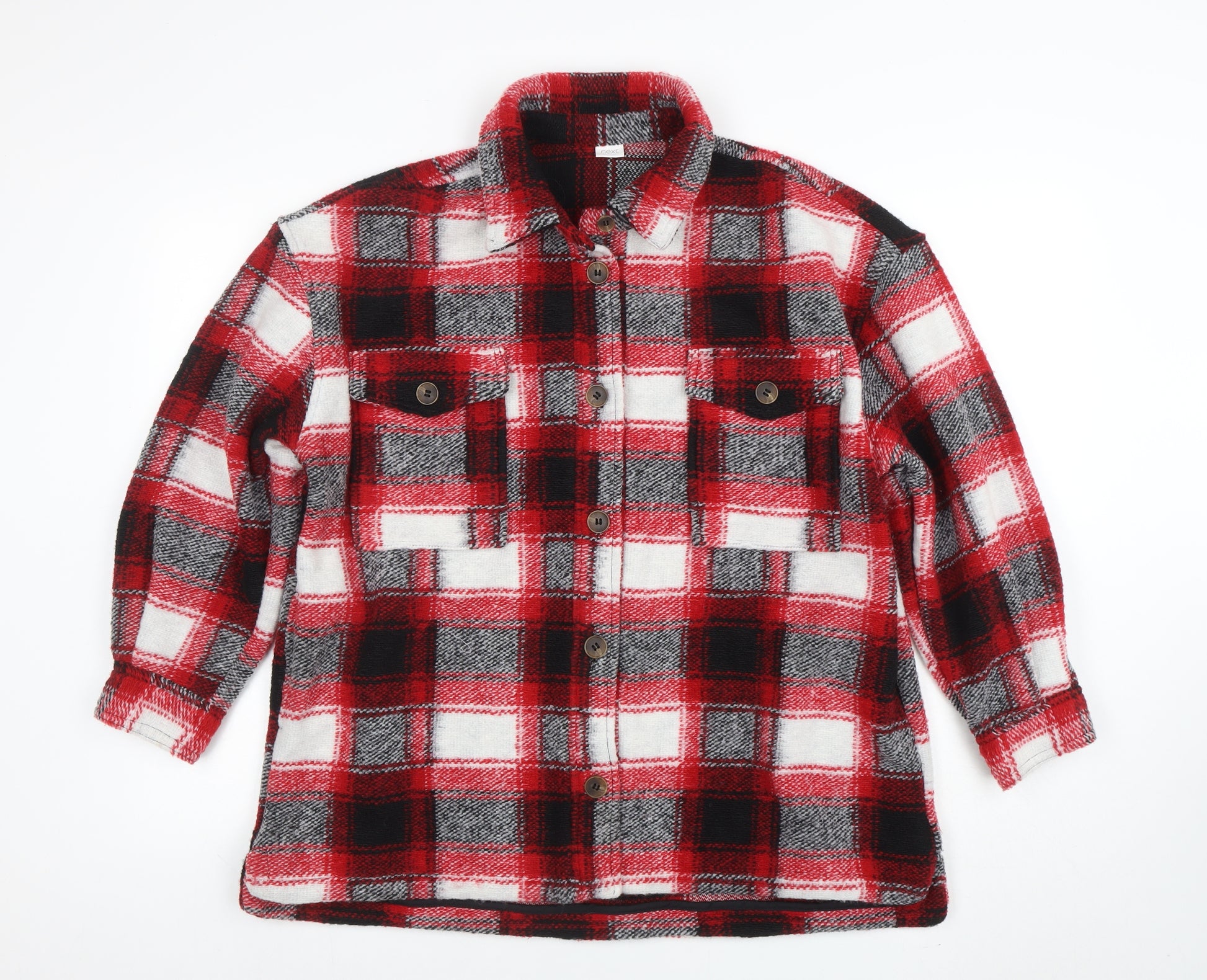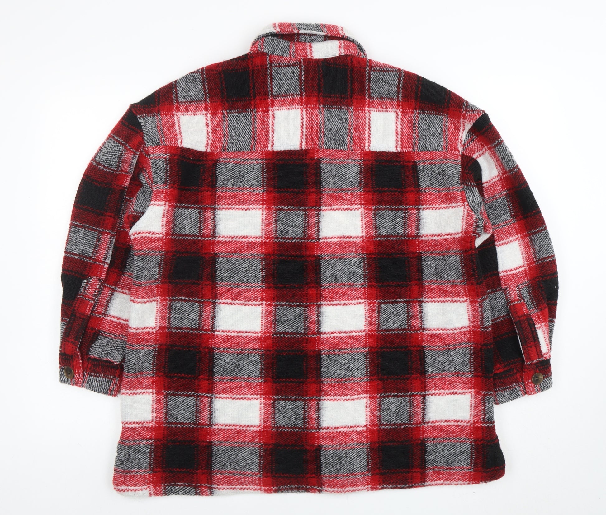 Next Girls Red Check Flannel Shirt Jacket 12 Years Button Long Sleeve