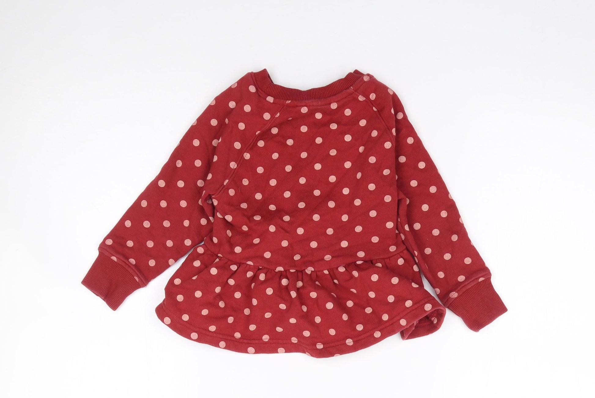Girls Red Crew Neck Polka Dot Cotton Pullover Jumper Size 2-3 Years Pullover