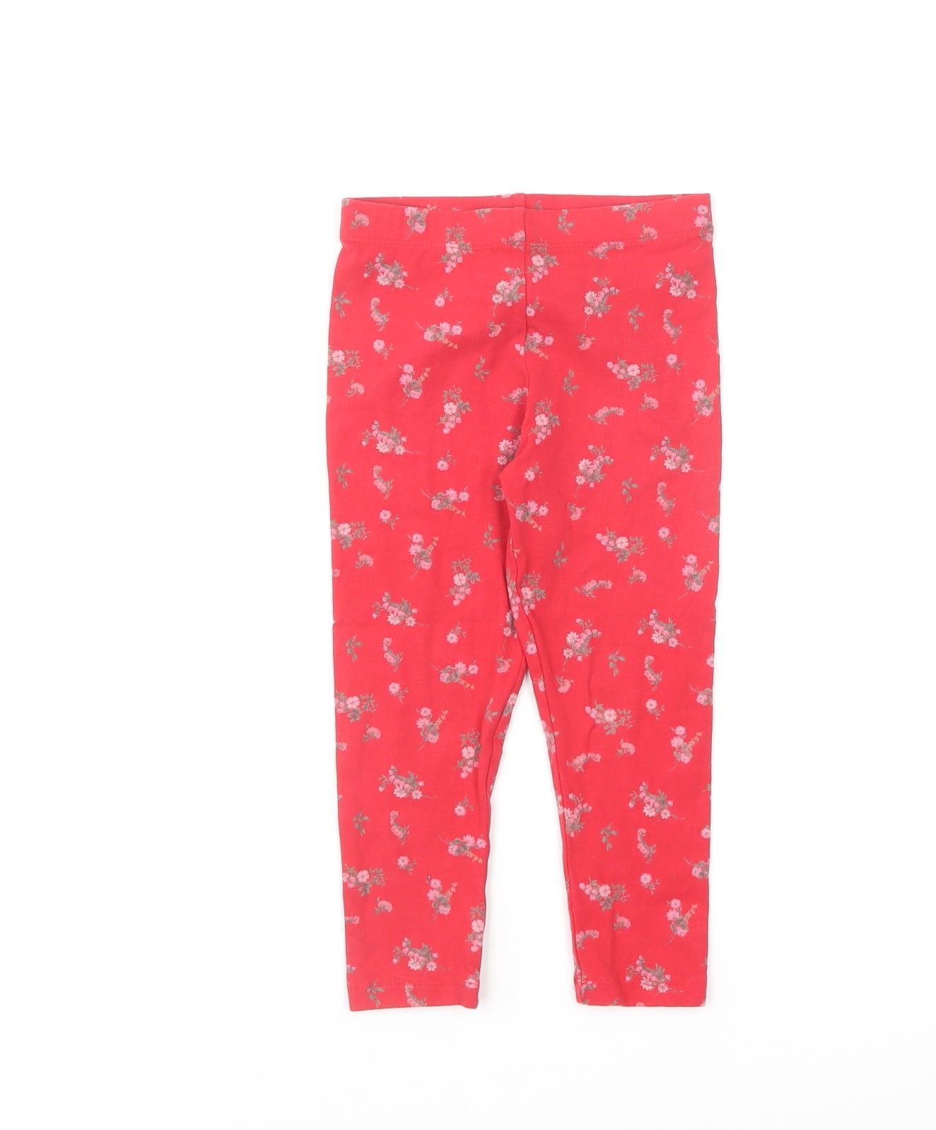Girls Red Floral Cotton Jogger Trousers Size 3-4 Years Regular Pullover
