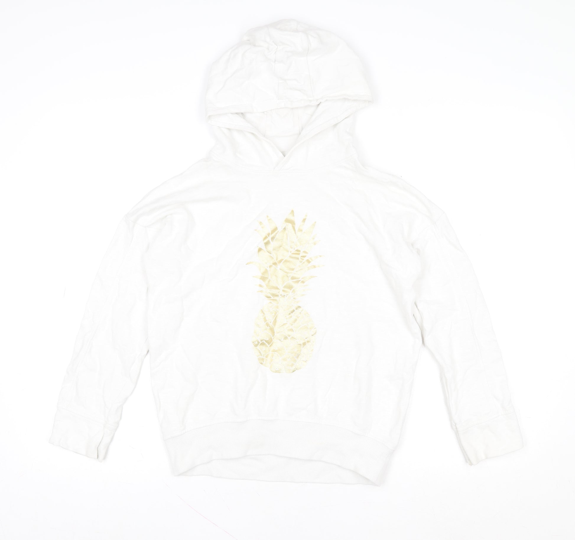 Next Girls White 11 Years Pineapple Print Cotton Pullover Hoodie