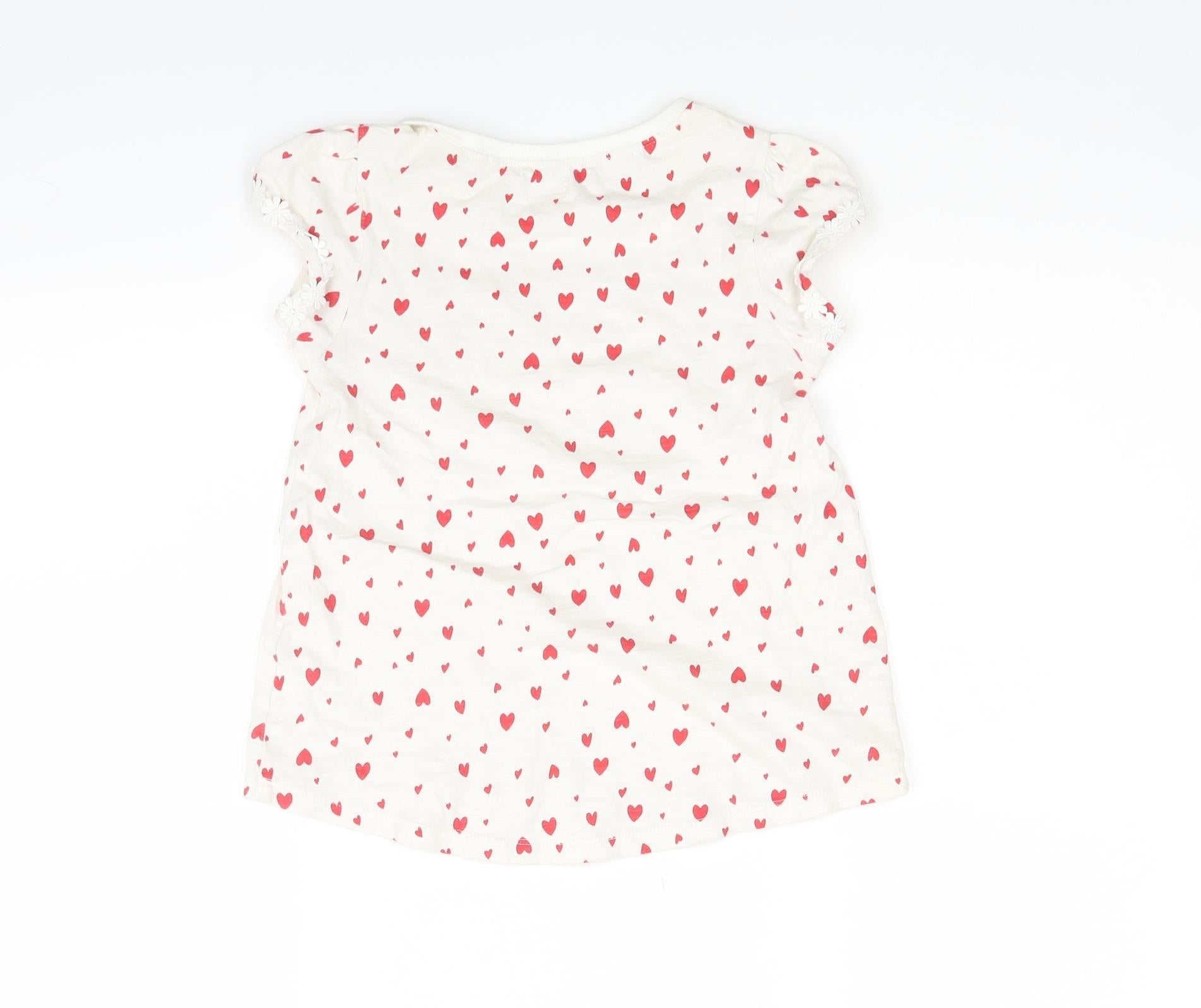 Girls White Basic T-Shirt Size 7 Years - Heart print