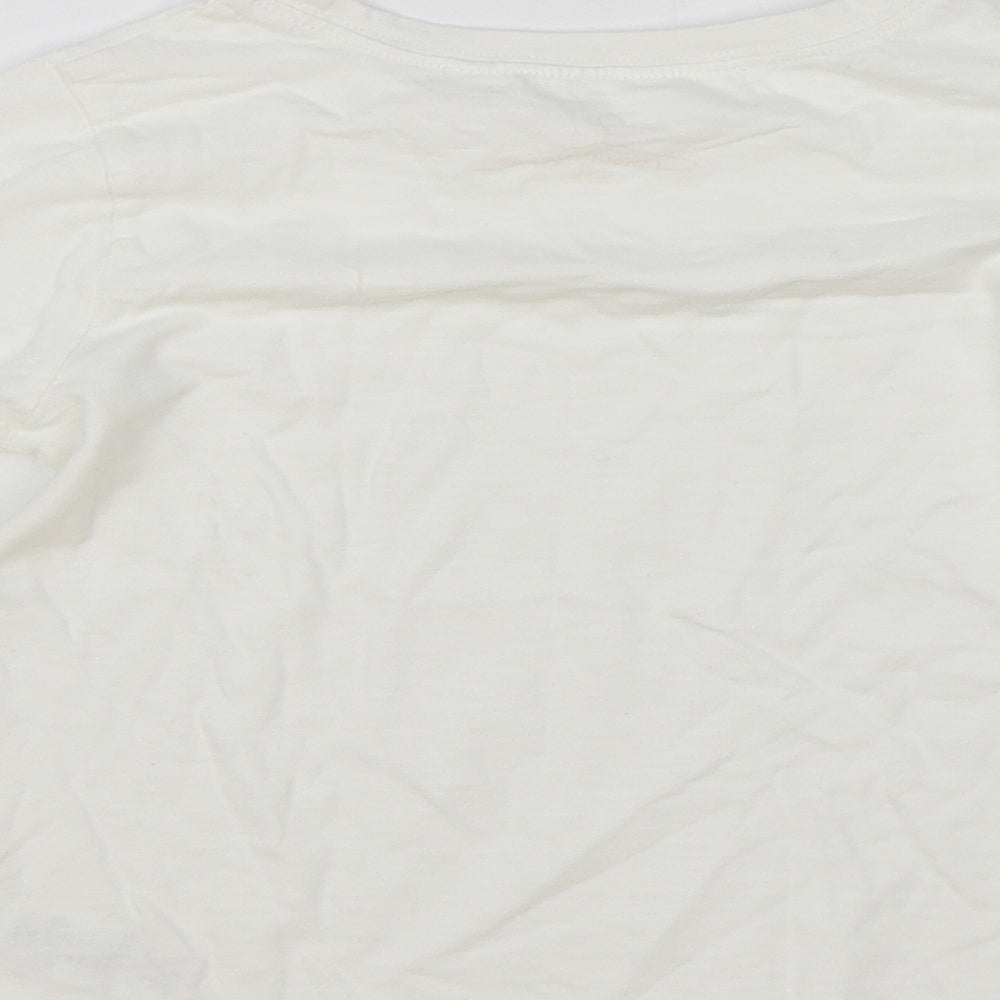 Girls White Cotton Basic T-Shirt Size 7 Years Round Neck Pullover