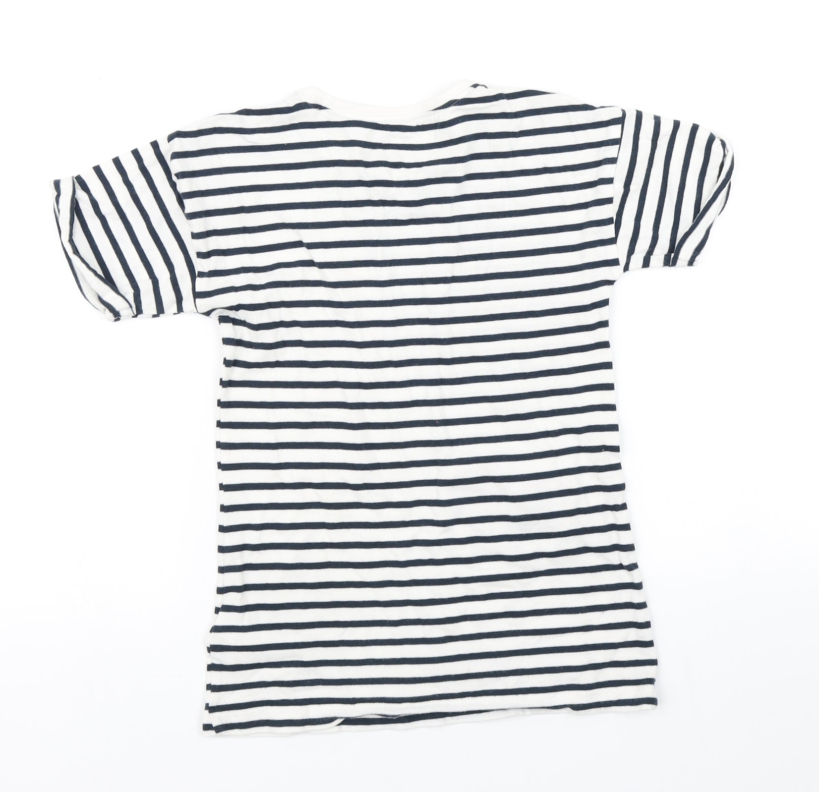 Girls White Striped Basic T-Shirt Size 5-6 Years