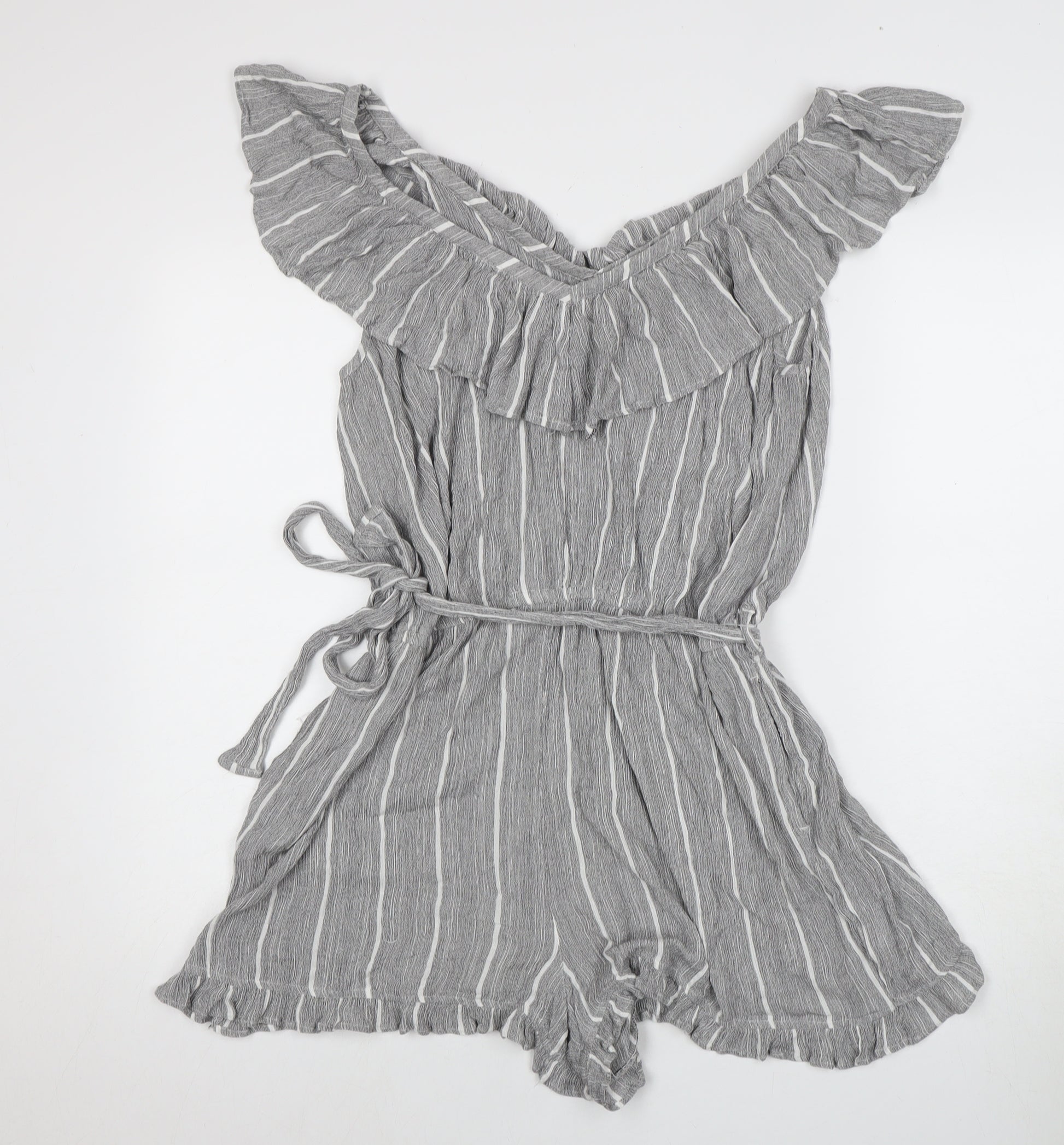 Next Grey Striped Women's Playsuit Size 16 Ruffle V-Neck