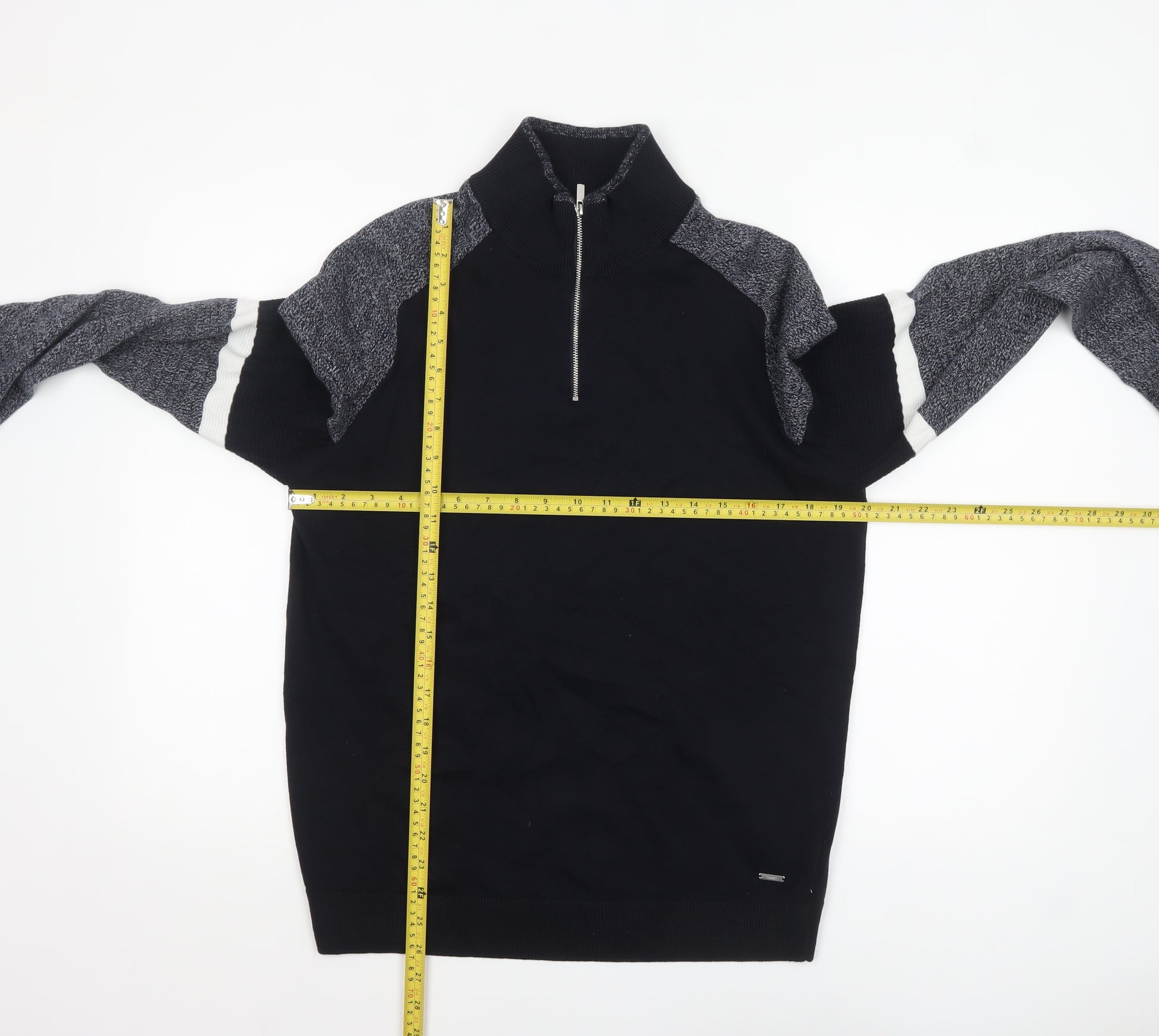 Add a versatile and stylish essential to your wardrobe with this men’s black half-zip jumper from Next. Crafted from 100% soft cotton, this piece combines comfort with practicality, making it ideal for everyday wear through the cooler months. The jumper features a high neck with a functional zip fastening, providing flexibility to adjust for comfort and warmth. Its sleek black main body is accented by grey and white striped detailing on the sleeves, giving it a modern, sporty look that works well for both casual evenings out and relaxed weekends at home. Designed for a regular fit, it offers ease of movement while maintaining a smart silhouette. The knitted cotton construction ensures breathability while keeping you comfortably warm during autumn and winter. The ribbed cuffs, hem, and neck add durability and help retain the jumper’s shape wear after wear. This half-zip jumper is easy to care for, being machine washable, and is built for long-lasting wear. Perfectly suited for layering over a shirt or under a jacket, it is an adaptable staple piece that blends practicality with effortless style. Whether paired with jeans or chinos, it lends a polished yet relaxed touch to your look. With its minimalist design and reliable comfort, this Next black high neck jumper is a must-have addition to any men’s wardrobe, offering an easy-to-style option that transitions seamlessly from casual work settings to weekend outings.