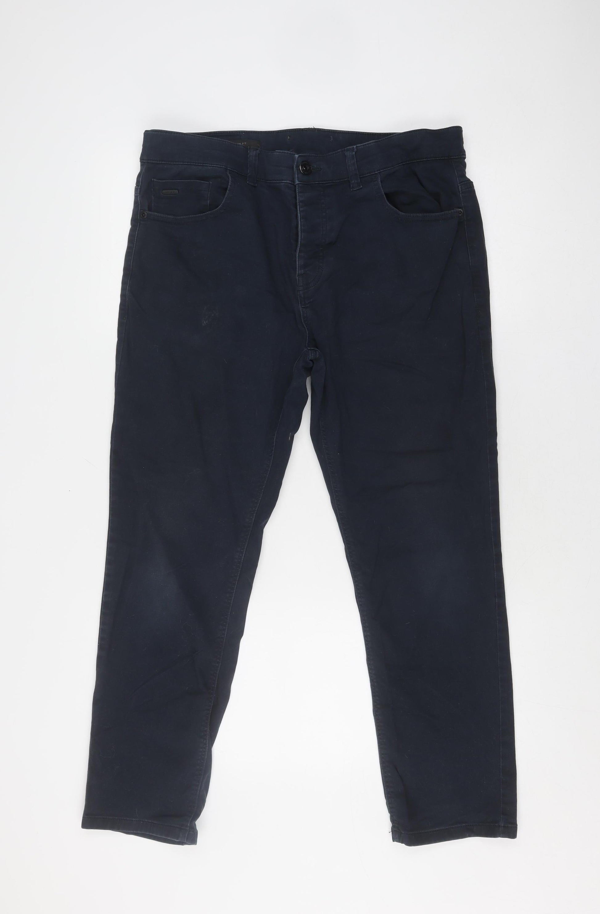 Upgrade your wardrobe with these versatile and stylish chino trousers from Next, designed for the modern man. Crafted in a sleek black colour, they offer a sophisticated yet casual look that can effortlessly transition from daytime activities to evening outings. Made from high-quality cotton with a touch of elastane, these trousers promise comfort and durability, making them ideal for daily wear. The regular fit offers a flattering silhouette, while the flat front and straight leg style add a classic touch. Designed with practicality in mind, these chinos feature a button closure and a 5-pocket design, providing ample storage for your essentials. The breathable fabric ensures comfort across all seasons, making them a valuable addition to your wardrobe. Whether paired with a smart shirt for a business-casual look or a relaxed tee for laid-back weekends, these trousers are sure to become a staple piece. Despite slight signs of wear, their excellent condition ensures they will continue to impress. Perfect for any occasion, these Next chino trousers are a must-have for any fashion-conscious individual seeking a blend of style, comfort, and functionality. Don’t miss out on the chance to add these timeless trousers to your collection.
