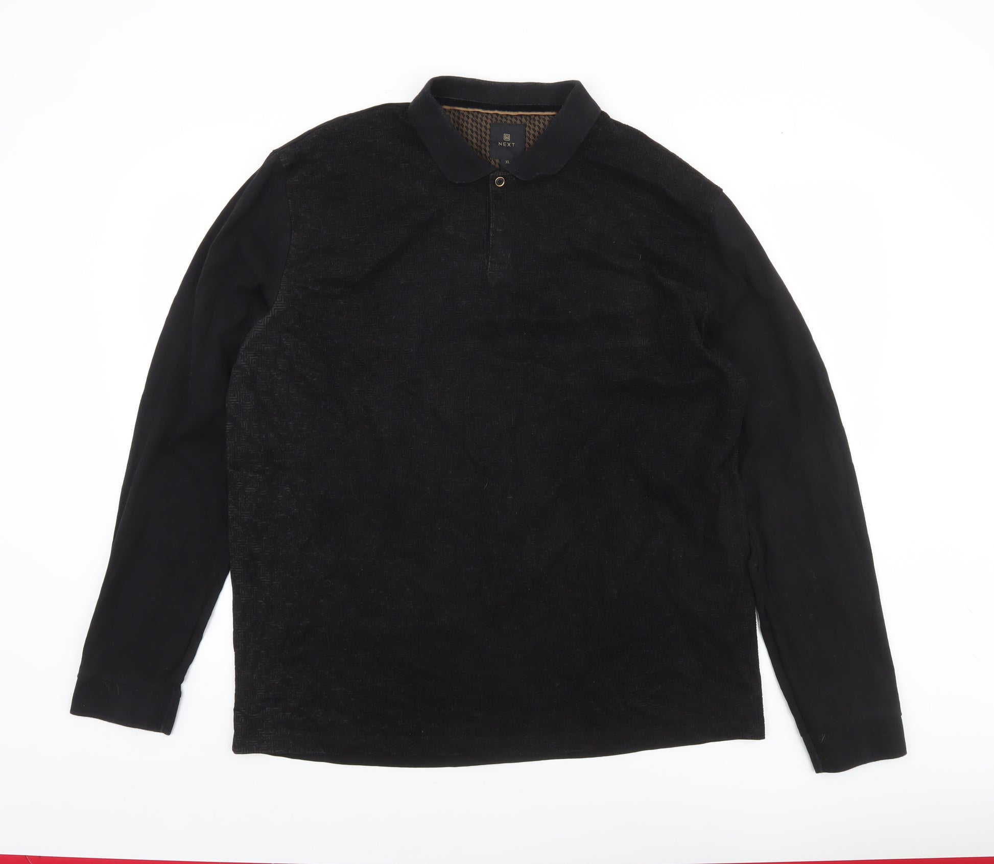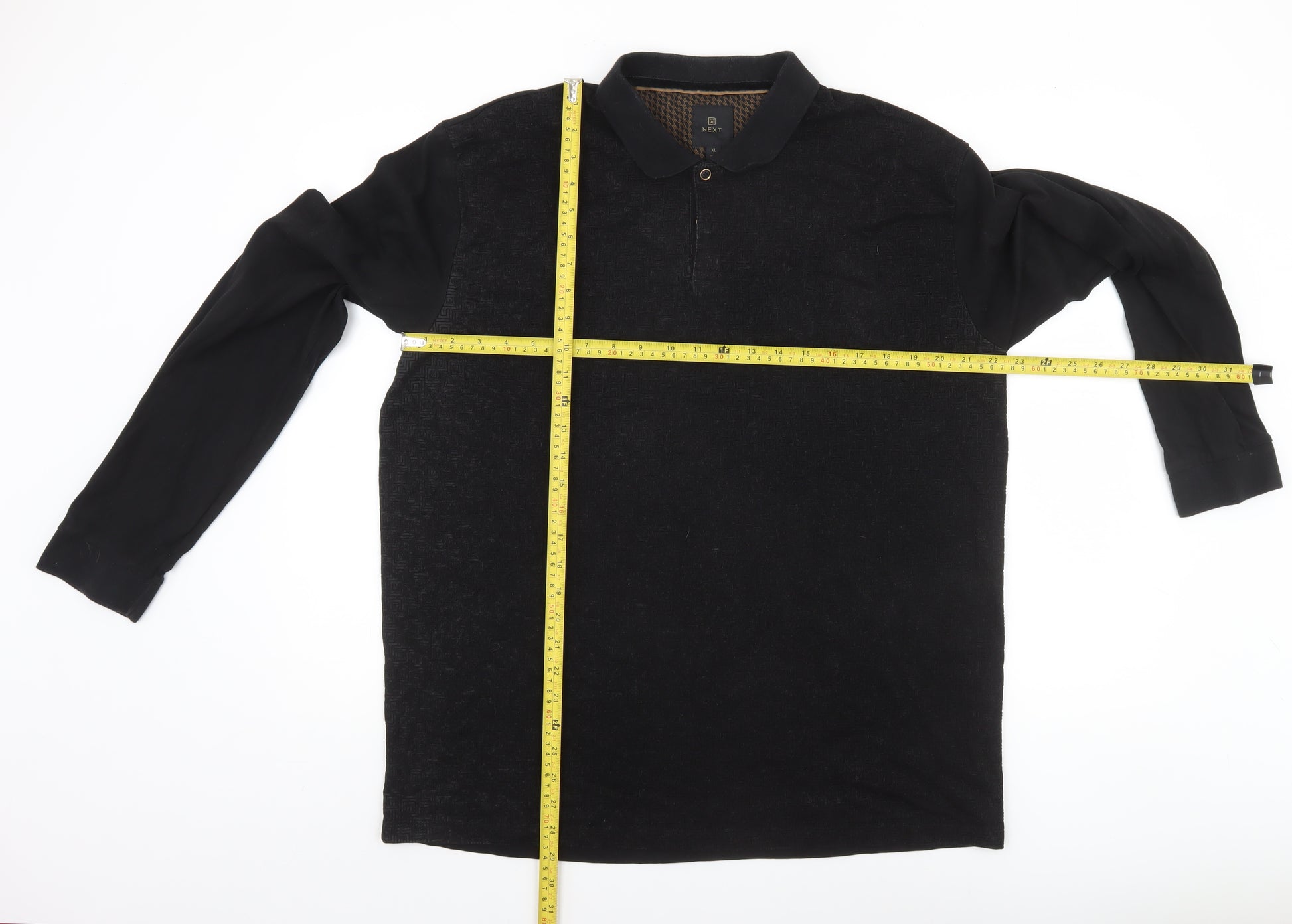 Next Men’s Black Long Sleeve Cotton Polo Shirt XL Regular Fit