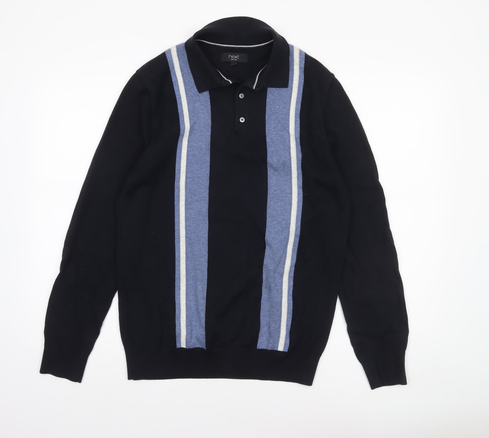 Next Men’s Blue Striped Collared Cotton Jumper M