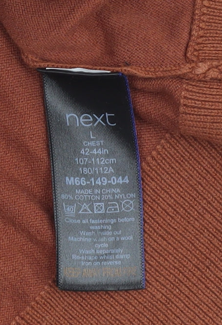 Next Men's Burgundy V-Neck Cotton Jumper L Classic Fit