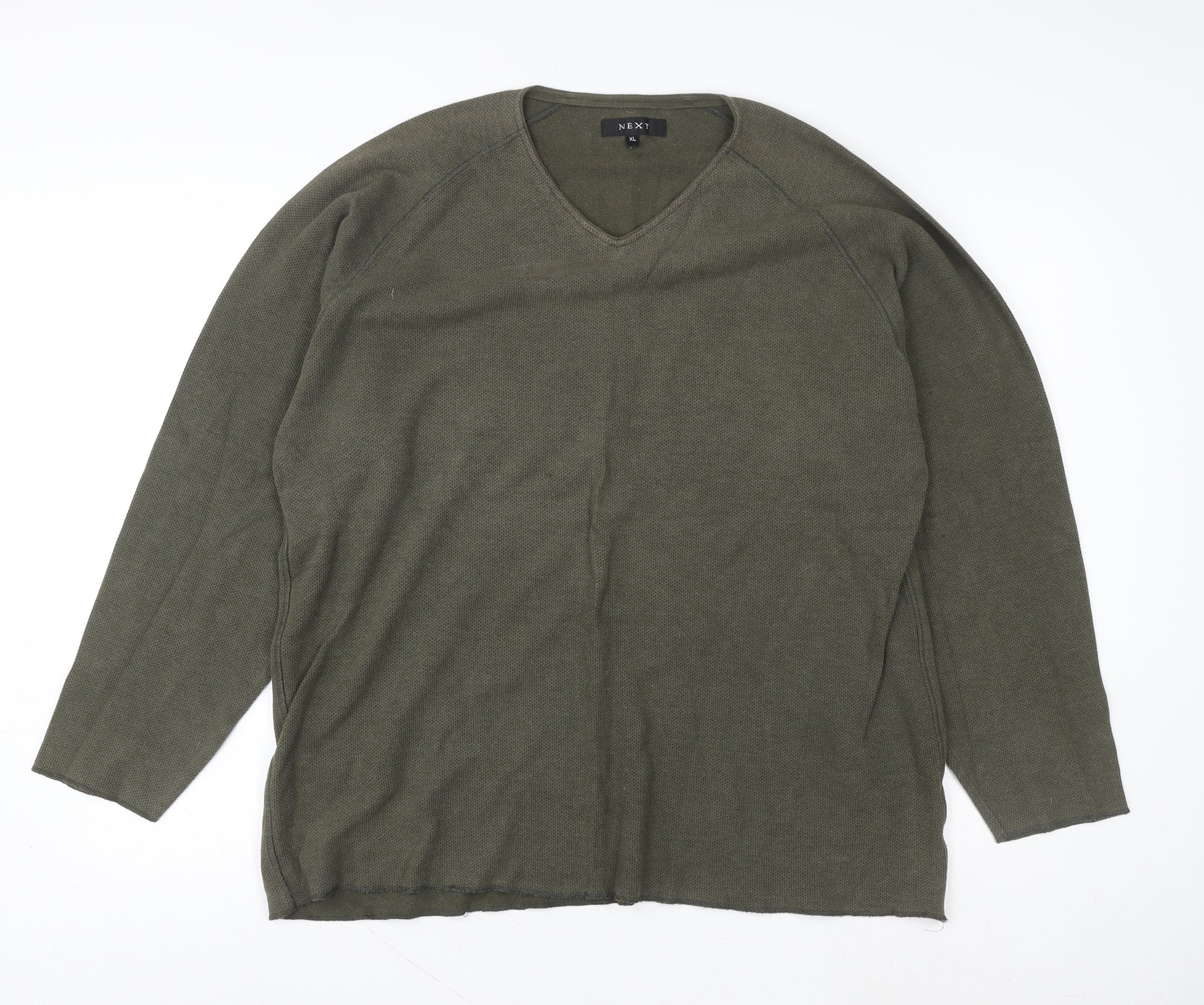 Upgrade your everyday wardrobe with this stylish men’s pullover sweatshirt from Next. Crafted from 100% cotton, this high-quality knit ensures both comfort and breathability, making it perfect for layering through the cooler months. Presented in a versatile green tone, this sweatshirt is ideal for achieving a laid-back yet refined look suitable for casual outings or relaxed weekends. The soft, lightweight fabric makes it suitable for wear across autumn, spring, and even mild winter days.Designed with a flattering regular fit and a classic V-neckline, this men’s sweater provides a clean and timeless appearance that pairs effortlessly with jeans, chinos, or joggers. The long sleeves add warmth, while the simple knit texture lends a subtle touch of sophistication without any busy patterns or embellishments. The durable cotton material ensures lasting wear and comfort while maintaining an easy-care, machine washable finish.With its premium quality craftsmanship, this Next pullover combines practicality and understated style. Its all-seasons versatility means it can be worn under jackets or as a standalone piece on cooler days. Ideal for men who value comfort, functionality, and effortless smart-casual style, this sweatshirt embodies quality and simplicity. In excellent pre-owned condition with minimal signs of wear, it’s a great addition to any contemporary wardrobe at exceptional value.Whether you’re heading out for a walk, meeting friends, or just relaxing at home, this Next green V-neck sweatshirt is a reliable choice for comfort and style. Don’t miss the chance to pick up this wardrobe essential that blends classic design with everyday practicality. Available in size XL, it offers the perfect fit for those seeking a comfortable and breathable top layer with timeless appeal.