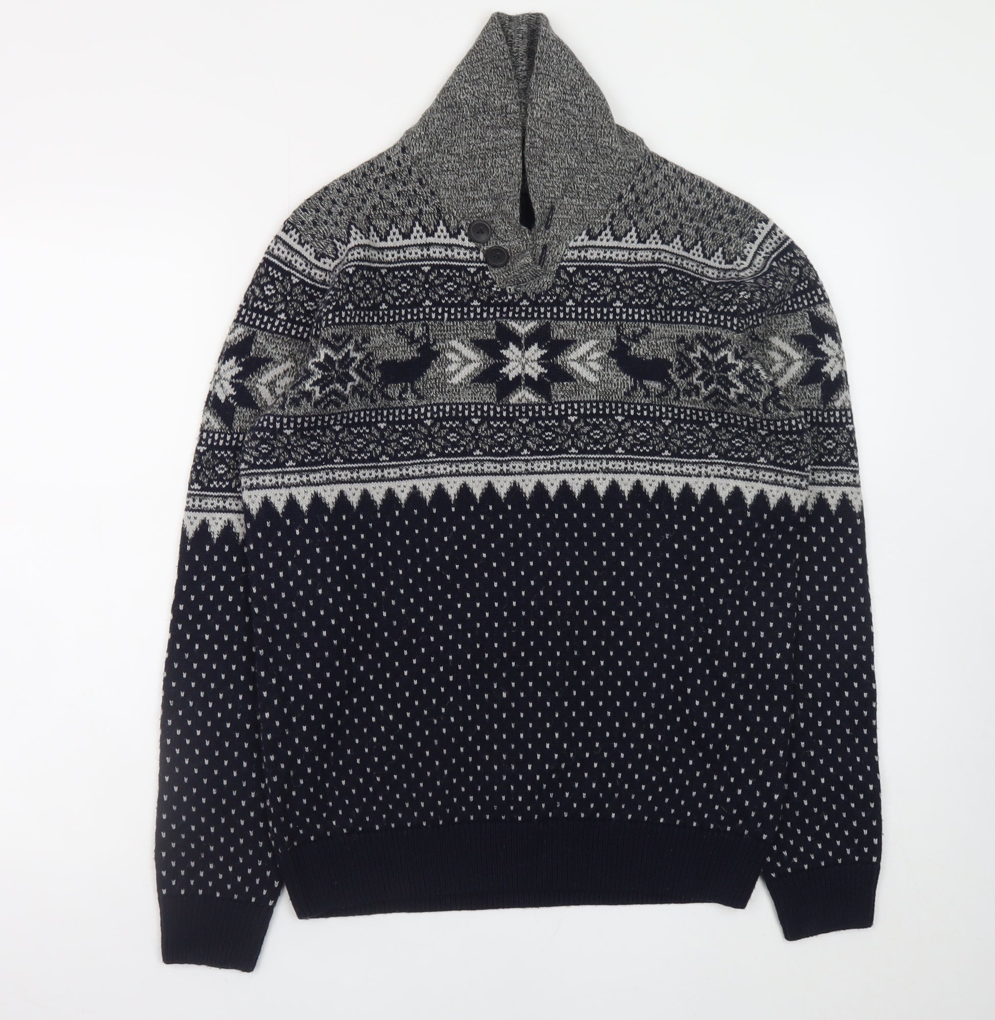 Next Men’s Grey Fair Isle Shawl Collar Jumper Medium