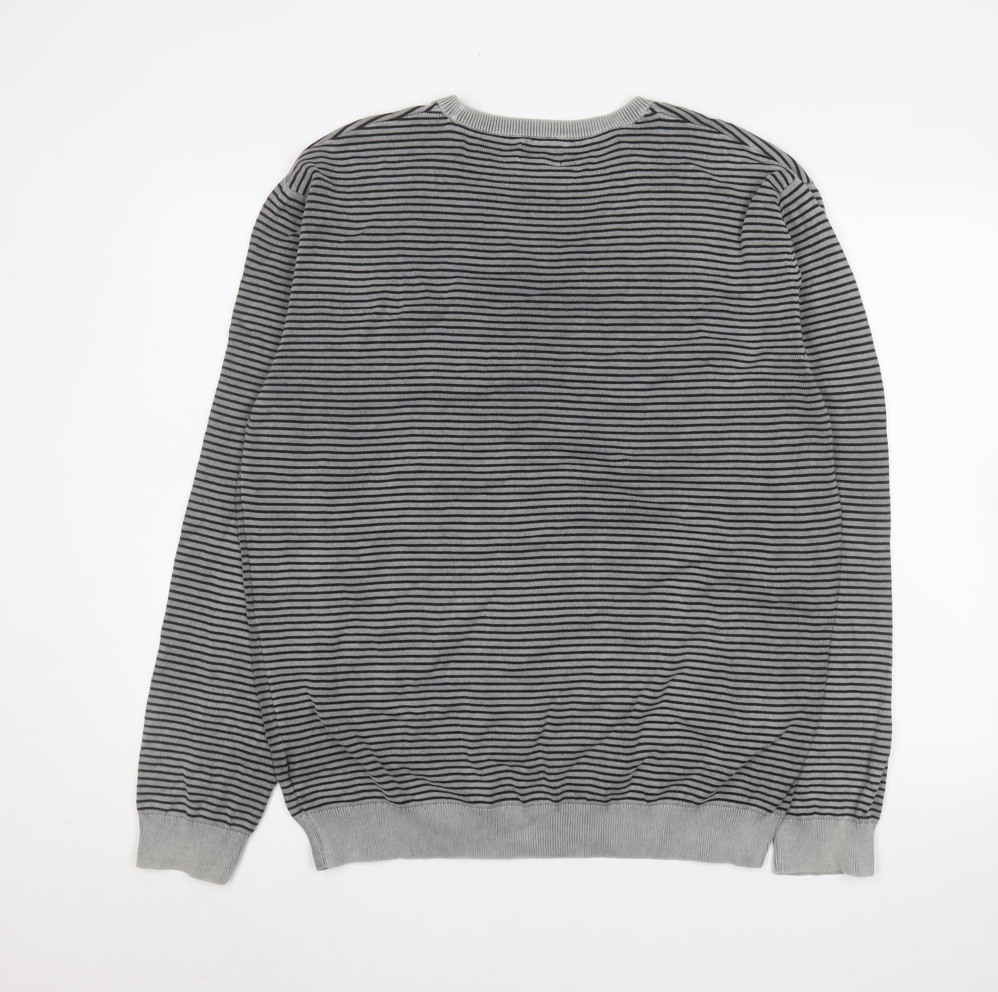 Next Men’s Grey Striped Cotton Crew Neck Pullover Jumper XL