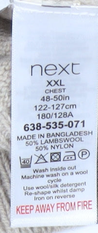 Elevate your casual wardrobe with this men's pullover jumper by Next, perfectly blending style with comfort. Crafted in a versatile Beige hue, this jumper effortlessly complements any outfit, making it a staple for your autumn and winter collection. Made with a premium blend of 50% wool and 50% nylon, it promises both warmth and durability, ensuring you stay cosy on even the chilliest days. The regular fit offers comfort without compromising on style, making this the ideal choice for laid-back weekends or casual gatherings. Featuring a classic crew neck, long sleeves, and a tastefully understated design, this jumper is a go-to choice for the modern man who values simplicity and quality. Its machine washable nature allows for easy care, offering more wear with minimal fuss. With its excellent condition, you can be assured of receiving a product that not only feels good but looks good, free from visible stains or wear. An ideal option for layering, pair it with your favourite jeans or trousers to create a polished, casual look. Invest in this timeless piece from Next and experience the effortless style and comfort it provides.