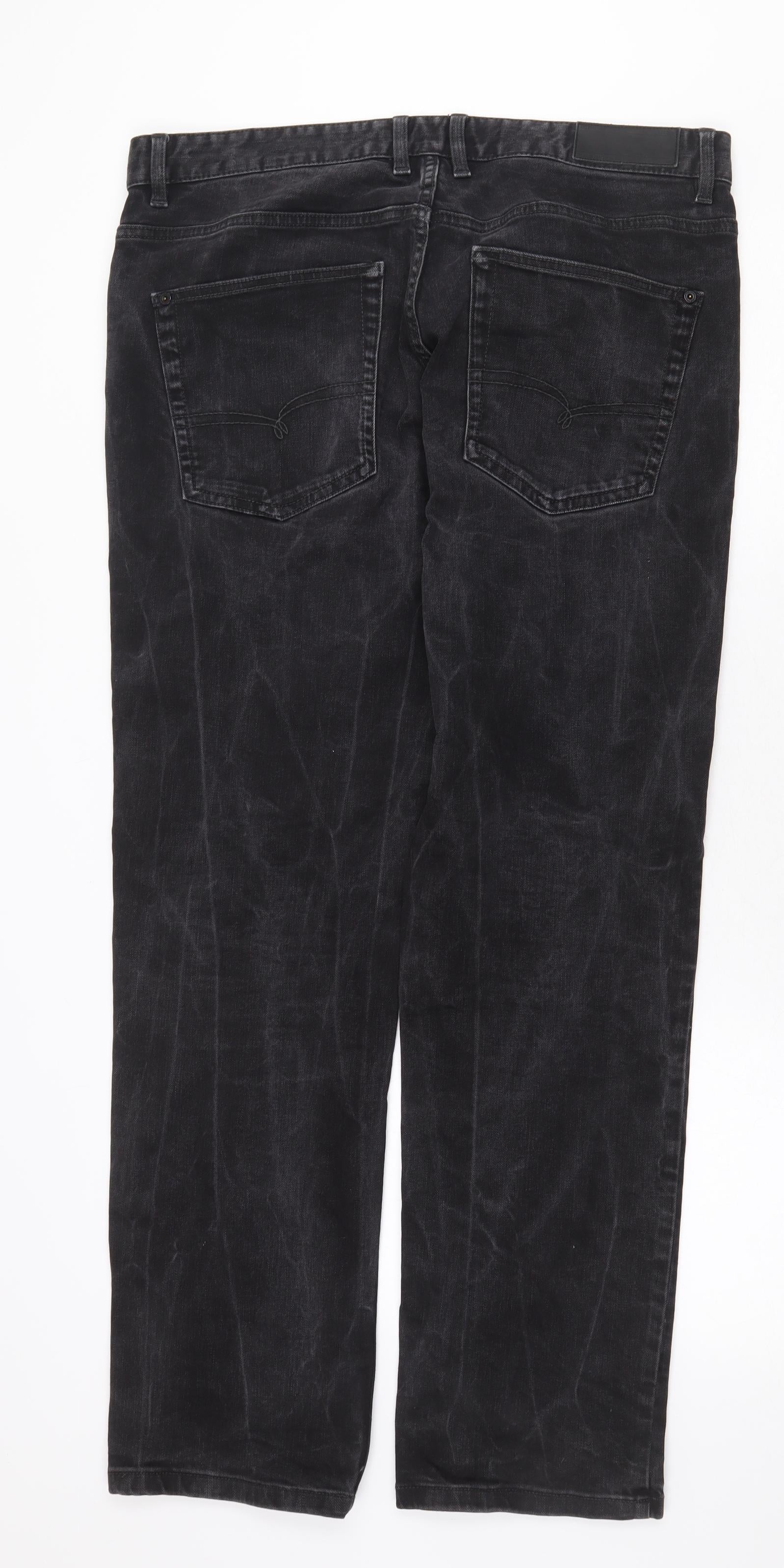 Mens Black Cotton Straight Jeans Size 34 in Regular Zip