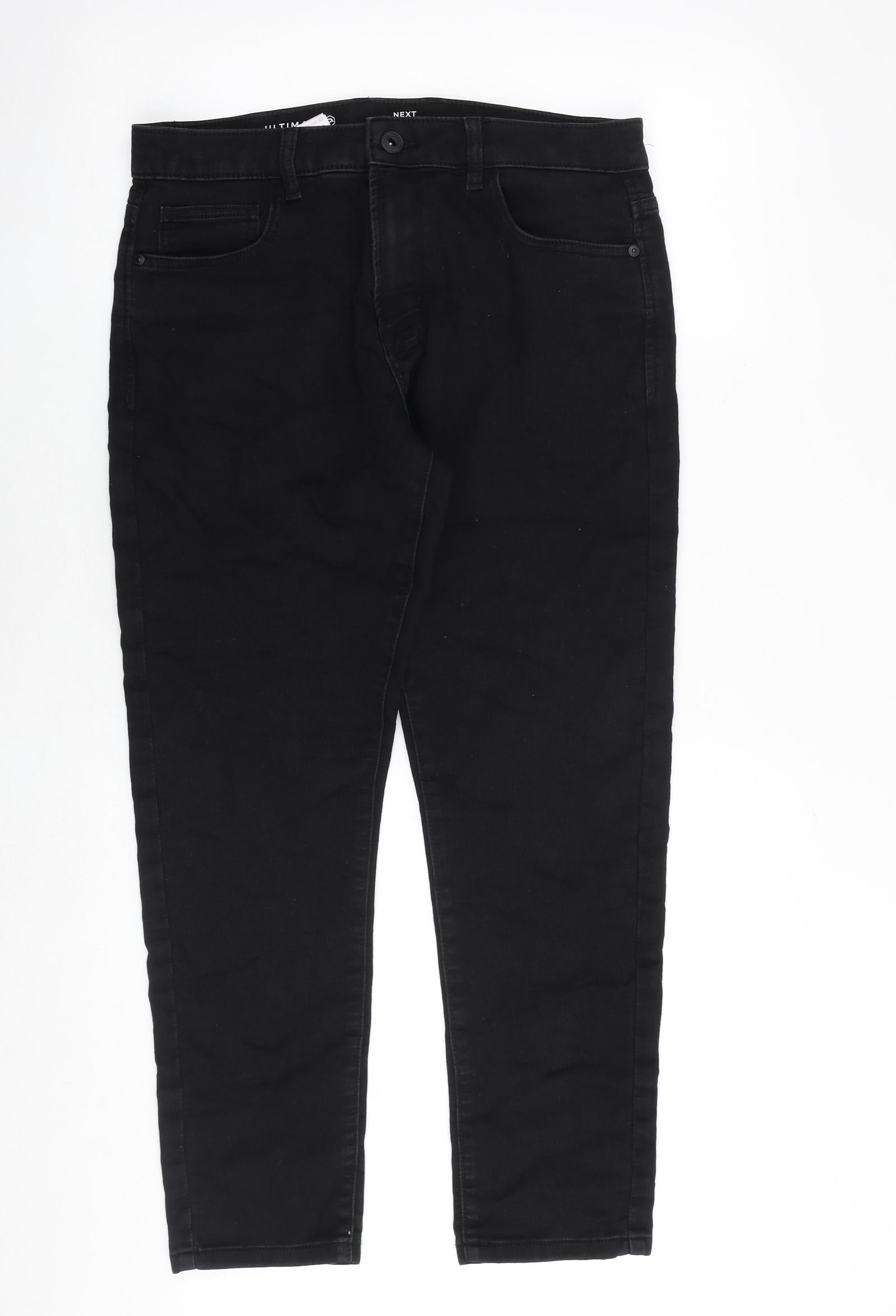 Mens Black Cotton Straight Jeans Size 34 in Regular Zip