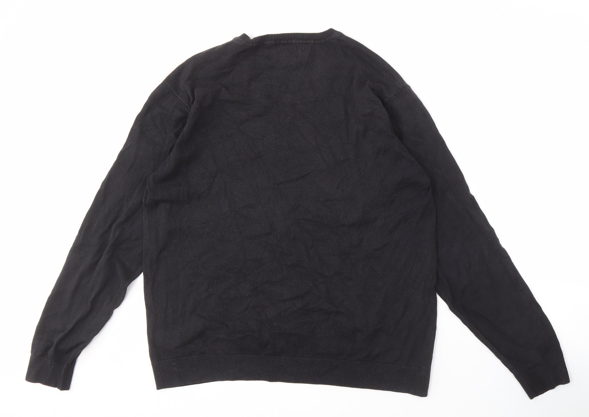 Next Men's Black Cotton V-Neck Pullover Jumper - L
