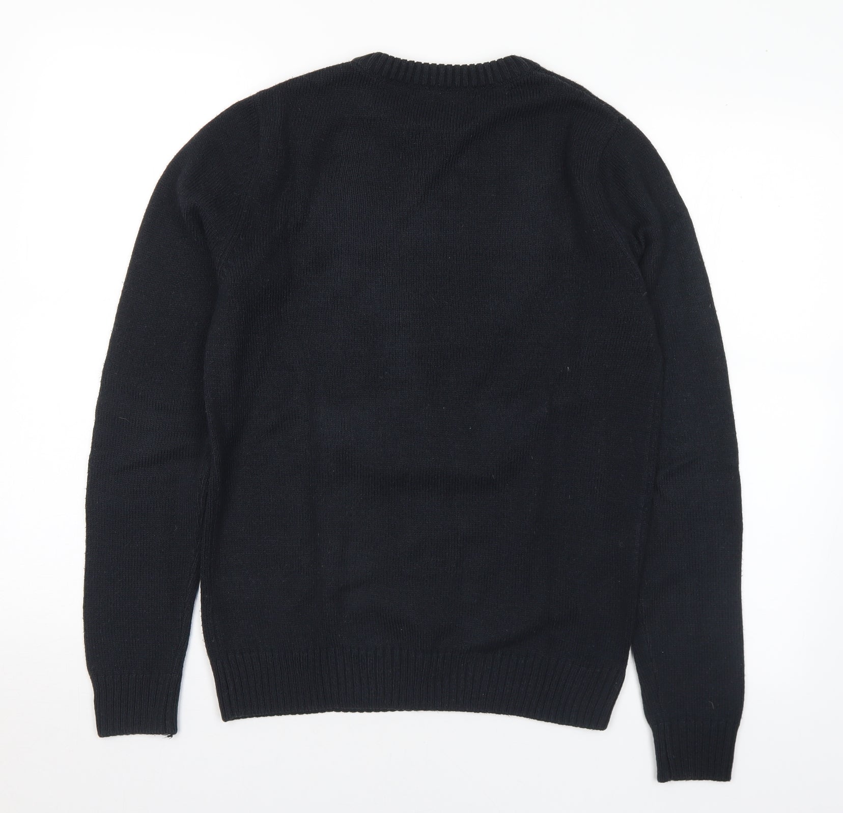 Mens Black Crew Neck Acrylic Pullover Jumper Size S - Christmas