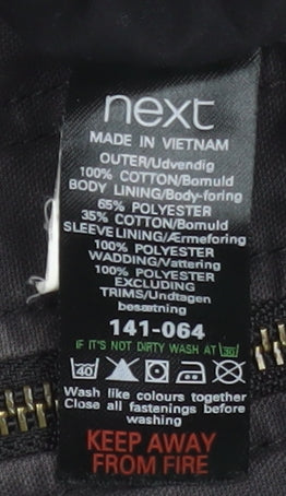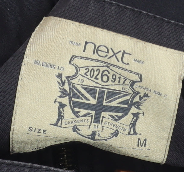 This stylish men's jacket from Next combines practicality with contemporary design, making it an ideal choice for everyday wear. Crafted from 100% cotton, the outer shell offers a soft yet durable finish, providing comfort and endurance throughout the seasons. The interior is lined with a cosy blend of polyester and cotton, ensuring warmth during cool days while maintaining breathability. Designed in a versatile black colour, this mid-length jacket complements any outfit, whether layered over a shirt for work or a jumper for off-duty weekends.The jacket features a hood with adjustable drawstrings, perfect for unpredictable UK weather. Its combination of full zip and button fastening offers extra protection against the wind, while multiple front pockets provide convenience and stylish detailing. Thanks to its durable cotton construction and polyester insulation, this piece is ideal for autumn, winter, and early spring.Accented with brown buttons and a subtle Next logo patch, this jacket maintains a refined yet rugged aesthetic. The stand-up collar design enhances its modern look, and the high-quality machine-washable materials make it easy to care for. The fit is regular, offering comfort without compromising shape, ideal for everyday movement and versatility.This jacket’s excellent pre-owned condition shows minimal wear and no visible flaws, ensuring many more seasons of use. Ideal for casual outings, commuting, or travel, it serves as a reliable and stylish companion for cooler weather. A perfect balance of form and function, this Next black hooded cotton parka jacket is a wardrobe essential for the modern man seeking effortless style and practicality. Pair it with jeans and boots for a relaxed, timeless look ready for any outdoor or urban setting.