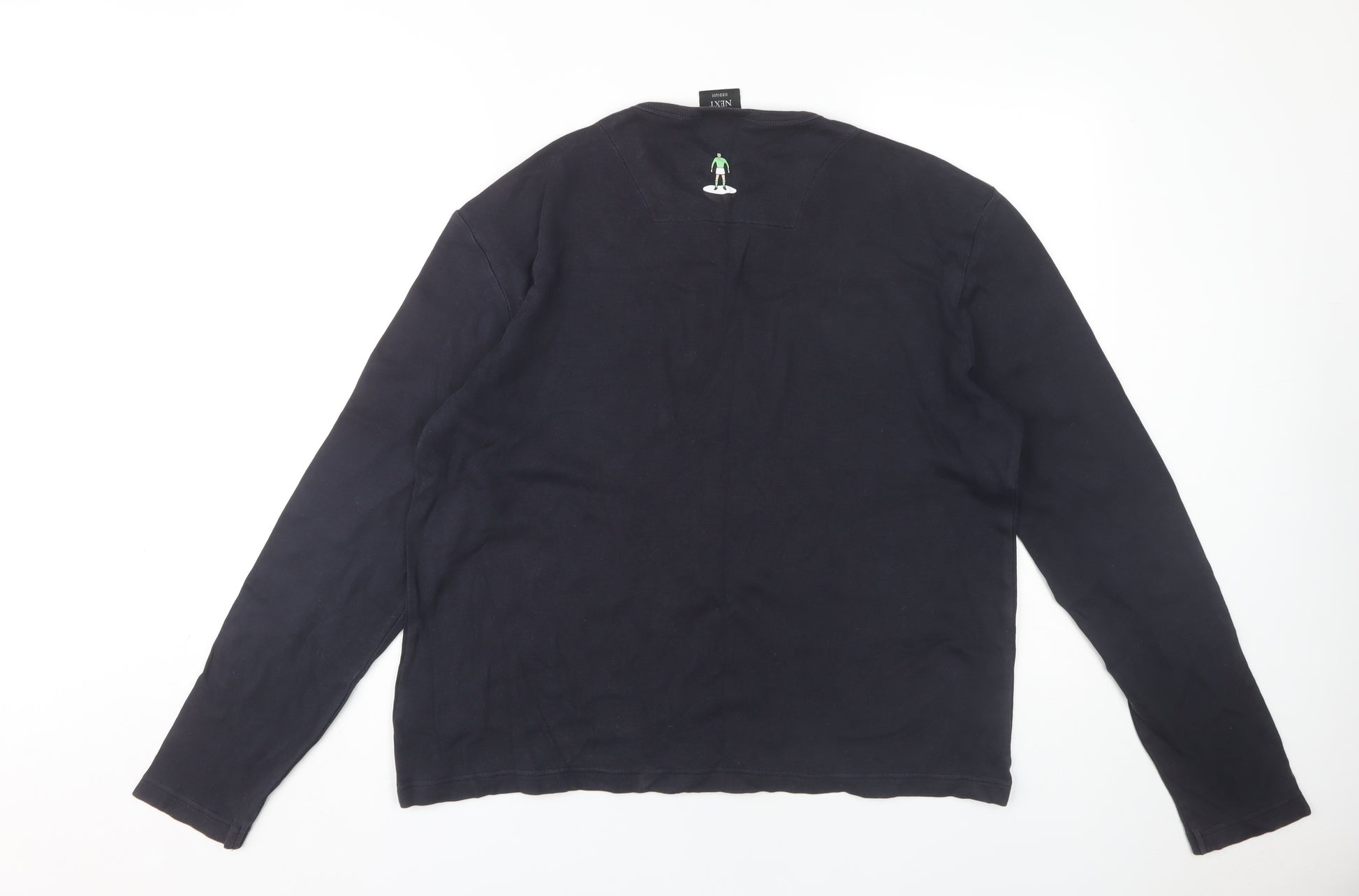 Upgrade your casual wardrobe with this stylish men's T-shirt from Next. Crafted from 100% cotton, this piece offers softness and durability, ensuring comfort throughout the day. With a classic crew neck and long sleeves, the T-shirt comes in a sleek black colour, perfect for versatile styling. The eye-catching graphic print features a sports theme, ideal for the enthusiast looking to show off their passion. Designed with a regular fit, this T-shirt is great for layering under jackets during autumn and winter, making it a practical addition to your seasonal collection. The garment is easy to care for, being machine washable for hassle-free maintenance. Conditioned in excellent form, with only slight fabric wear indicative of gentle use, it remains stylish and functional. Whether for casual outings or laid-back weekends, this Next T-shirt is an essential piece that blends effortlessly with various outfits. Don't miss out on this opportunity to enhance your ensemble with a touch of sporty flair.