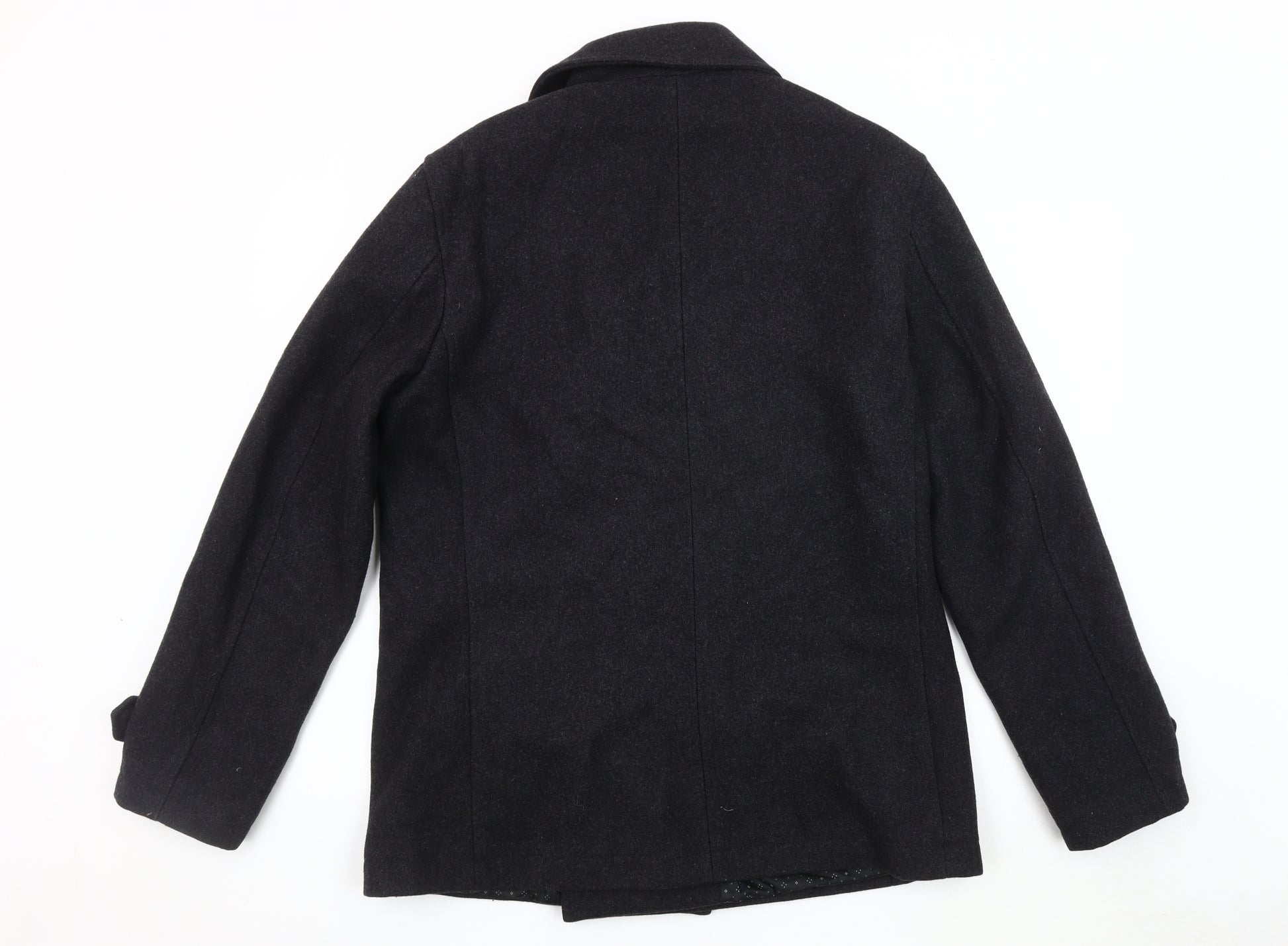 Next Men's Black Pea Coat L, Wool Blend, Business Casual