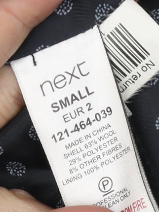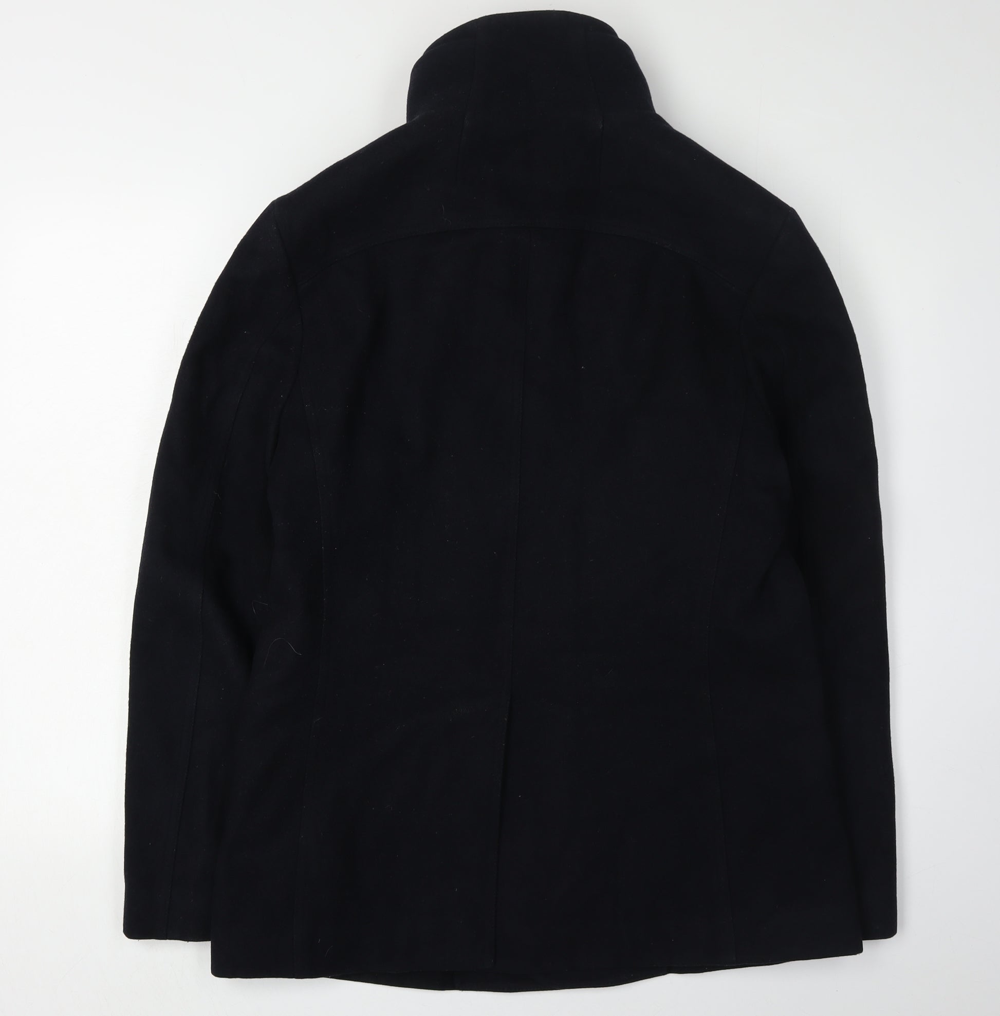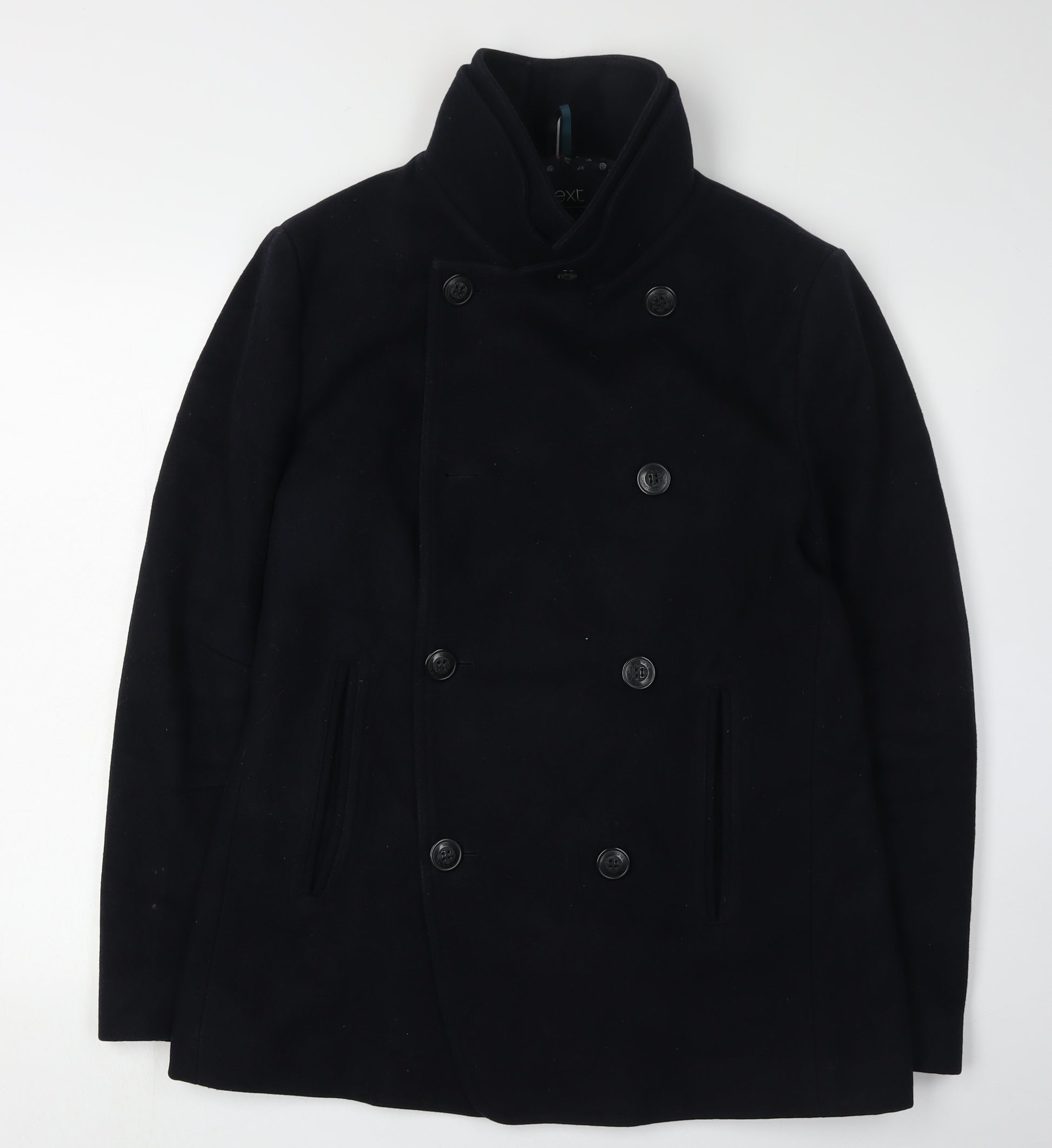 Enhance your wardrobe with this sophisticated men's pea coat from Next. Designed in classic black, this coat is crafted from a high-quality wool and polyester blend, offering both comfort and durability. Ideal for cooler months, its double-breasted style and mid-length cut create a polished appearance suitable for both business and casual occasions. The coat features a stand-up collar and button accents, adding a touch of elegance to this timeless piece. With a fully lined interior, the coat ensures warmth and comfort during autumn and winter. Enjoy the versatility and classic appeal of this regular fit pea coat, perfect for making a stylish statement.
