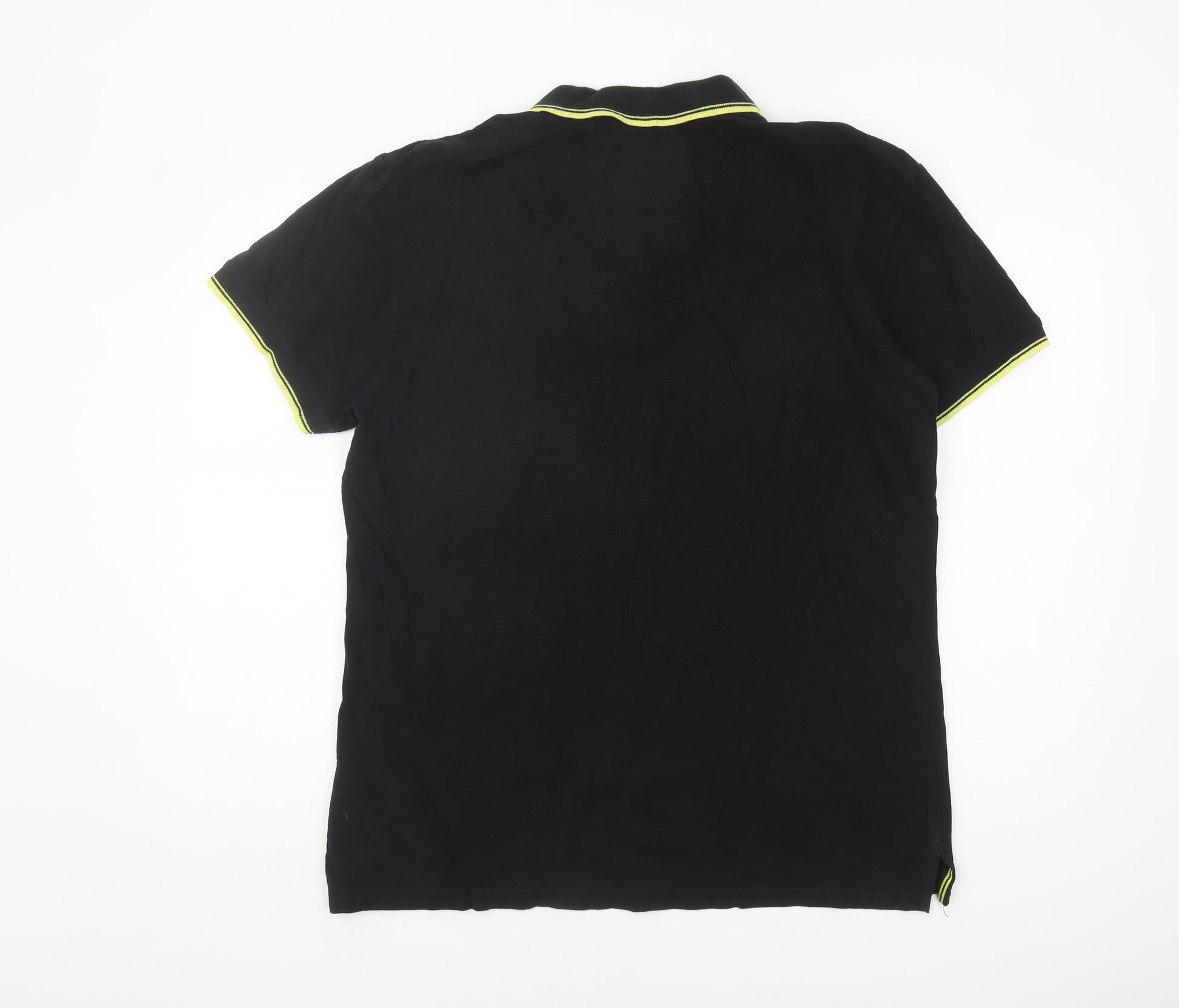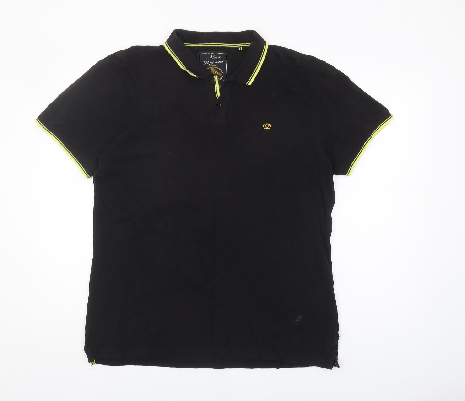 Upgrade your casual wardrobe with this stylish Next men's polo shirt in black. Designed for comfort and versatility, this extra-large polo offers a classic fit perfect for everyday wear. Featuring a collared neckline and short sleeves, this shirt is made from 100% cotton, ensuring breathability and softness against the skin. The subtle logo accent adds a touch of brand recognition without overpowering your look. With its solid pattern and elegant point collar, this polo is suitable for casual outings or smart-casual events. Machine washable for easy care, this shirt is a must-have for your all-seasons collection. Despite slight wear, it remains in excellent condition, ready to complement your outfit with a touch of class and simplicity. Ideal for men who value style and comfort.