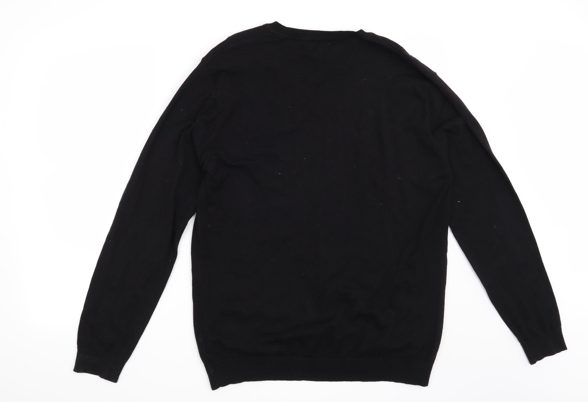 Next Men's Black V-Neck Pullover Jumper Size L Cotton Knit