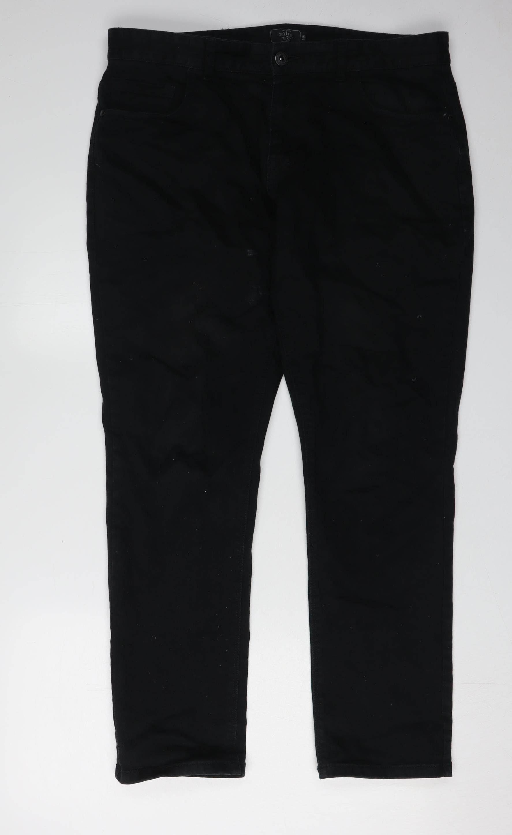 Upgrade your wardrobe with these stylish black straight jeans from Next, designed for men seeking both style and comfort. With a waist size of 36 inches and an inside leg measurement of 31 inches, these jeans offer a regular fit that easily complements a variety of tops and footwear. Crafted from a blend of soft cotton and elastane, they provide the perfect amount of stretch and breathability, ensuring you stay comfortable throughout the day.These jeans are machine washable and feature a dark fabric wash, making them ideal for autumn and winter seasons. With a mid-rise design, they deliver modern appeal without sacrificing comfort. The jeans incorporate a classic 5-pocket style, allowing you to carry essentials with ease.Whether you're headed to work or meeting friends for a casual outing, these Next jeans are a versatile addition to your collection. The straightforward button closure adds to their sleek look, while minor wear and marks indicate gentle prior use, offering you quality at an excellent value. Consider pairing them with a crisp white shirt for a classic look or a relaxed sweater for a leisurely vibe. Add these to your wardrobe today and enjoy the blend of style, functionality, and comfort that Next is known for.