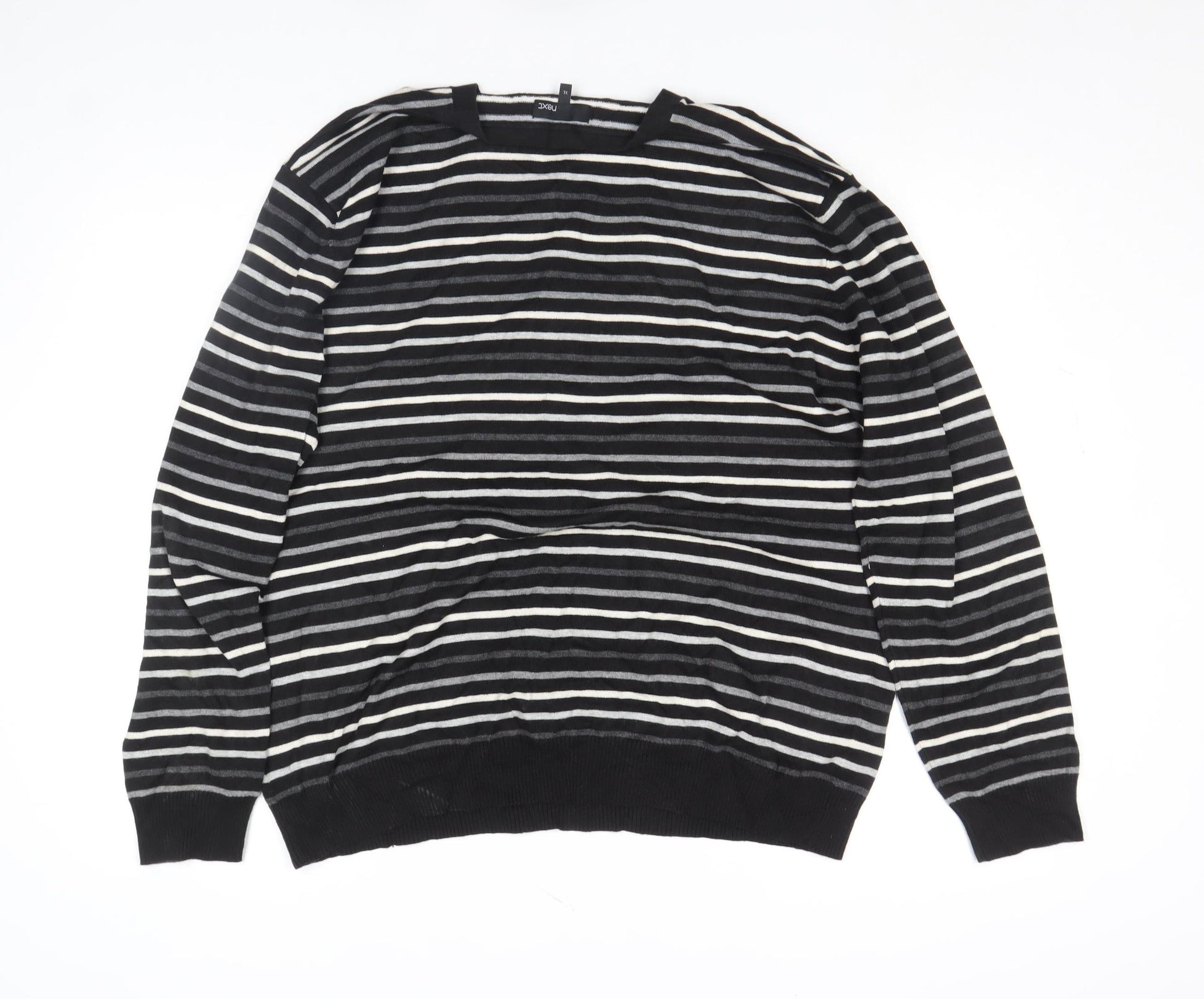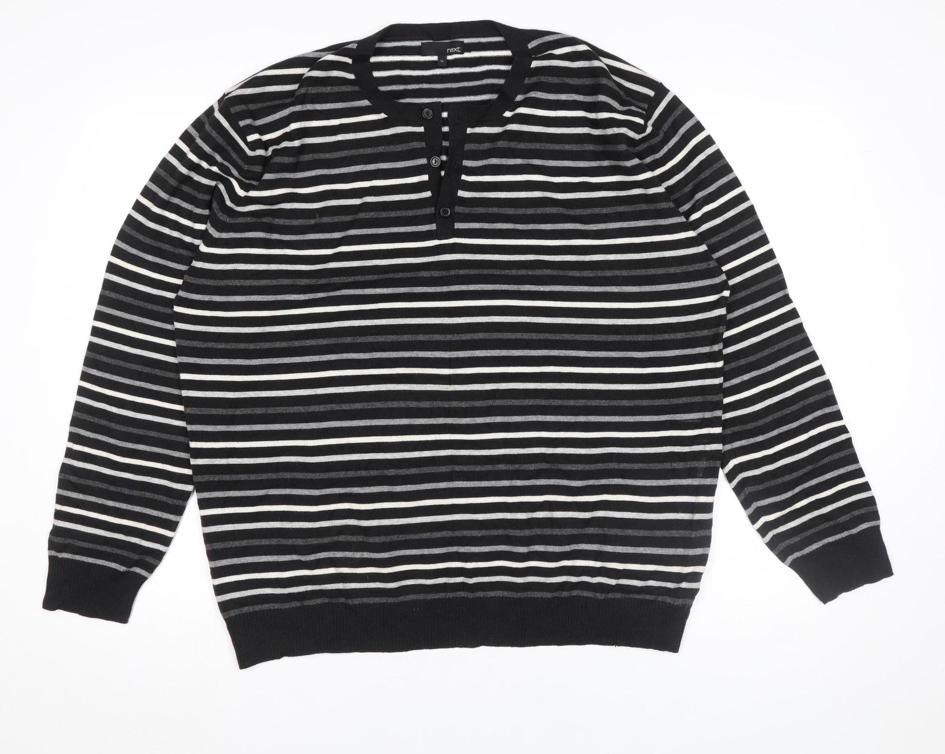 Next Men's Black Striped Henley Jumper XL Cotton Blend Long Sleeve
