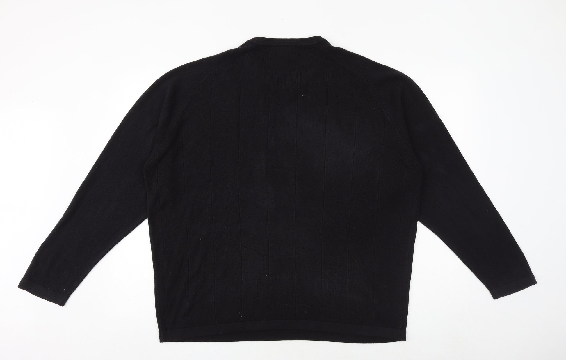 Mens Black V-Neck Acrylic Pullover Jumper Size XL Long Sleeve