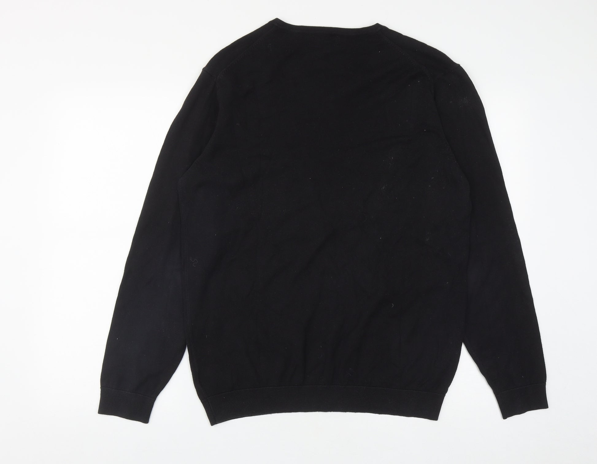 Mens Black V-Neck Cotton Pullover Jumper Size M