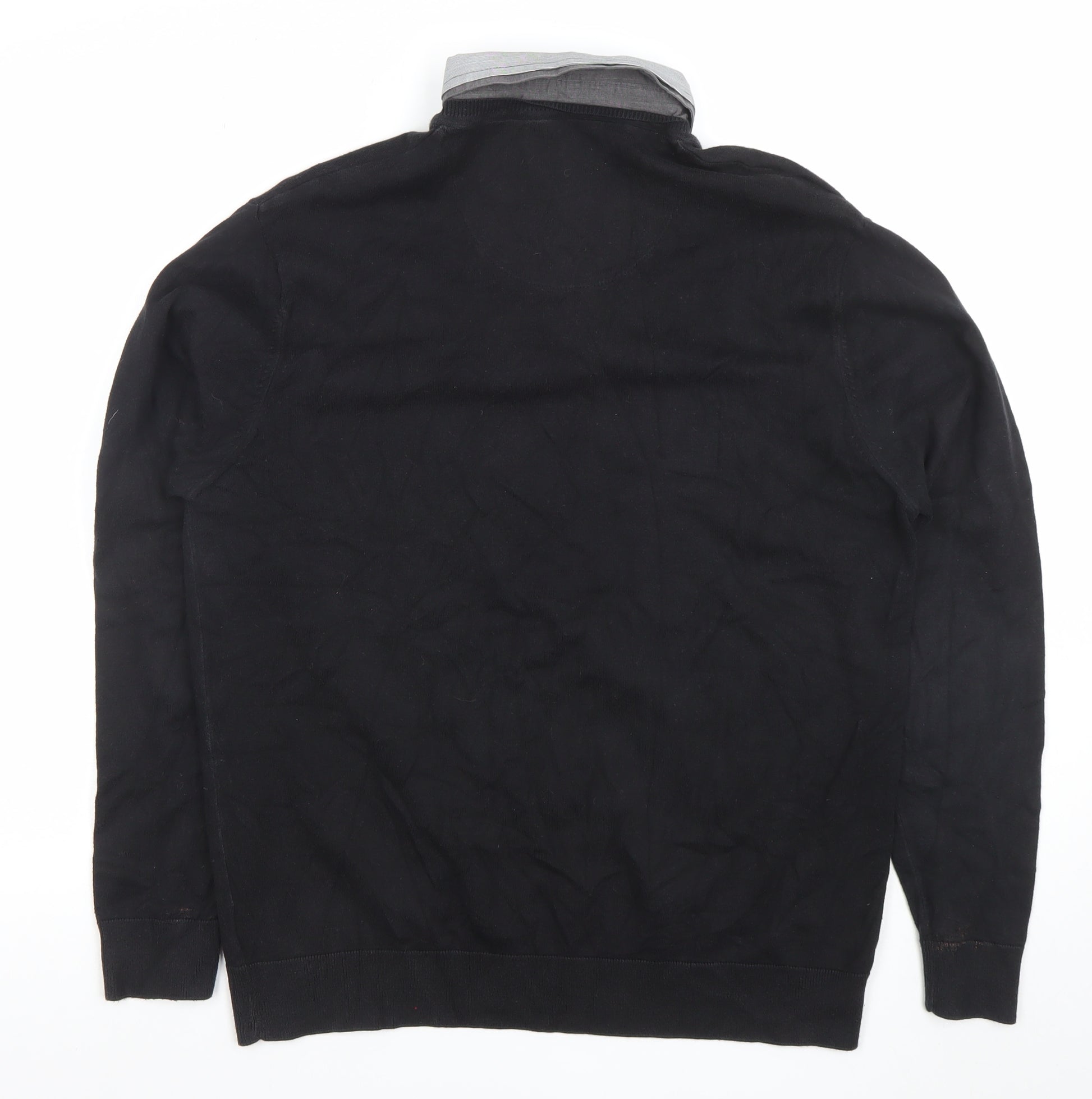 Next Men's Black V-Neck Long Sleeve Polo Sweater Size L Cotton Blend