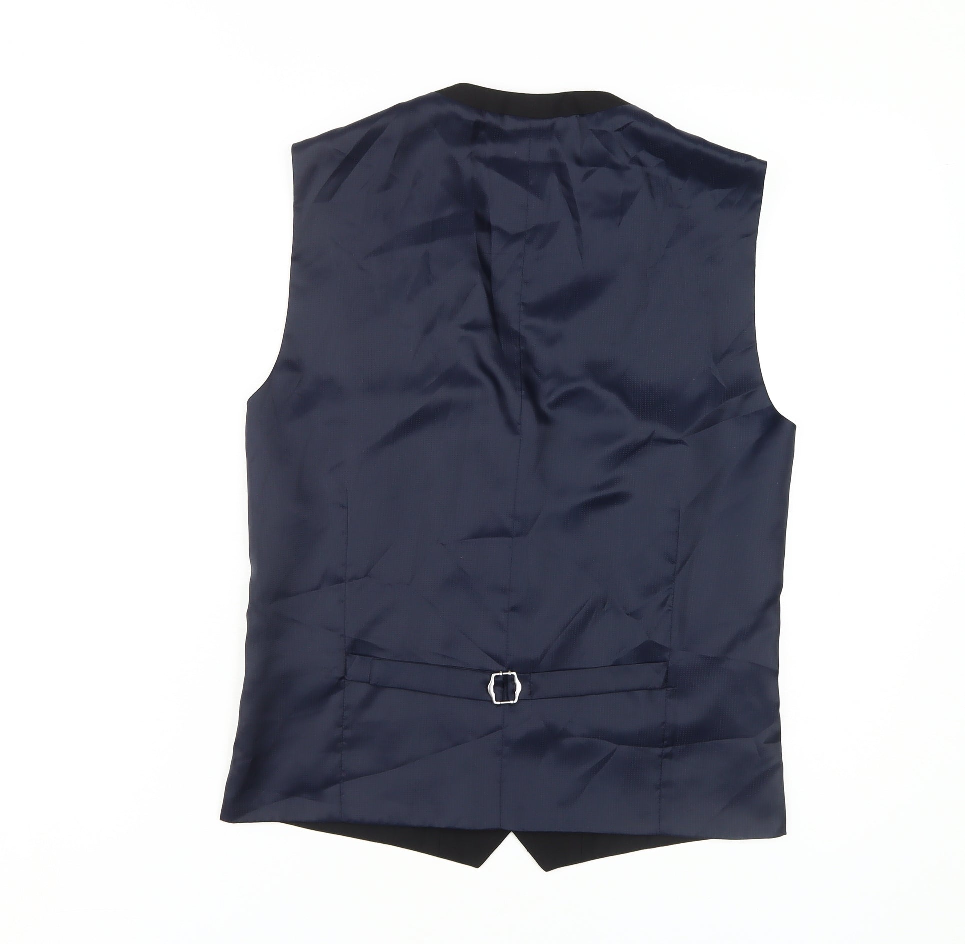 This men's suit waistcoat by Next is a smart and versatile addition to your wardrobe. Designed in a classic black colour, it features a regular fit and a 36-inch chest size, making it ideal for various body types. The waistcoat is made from a comfortable blend of 65% polyester and 35% viscose, offering durability and a sleek, professional look. Perfect for formal occasions or as part of a business ensemble, this waistcoat complements a wide array of shirts and ties. The back is fully lined with polyester for added comfort, and it includes an adjustable strap to ensure a perfect fit. Machine washable for easy care, this waistcoat is slightly creased but in excellent condition with no visible tags. A great piece to elevate your formal attire, whether for a meeting, event, or any special occasion. Get ready to make an impression with this refined piece from Next.