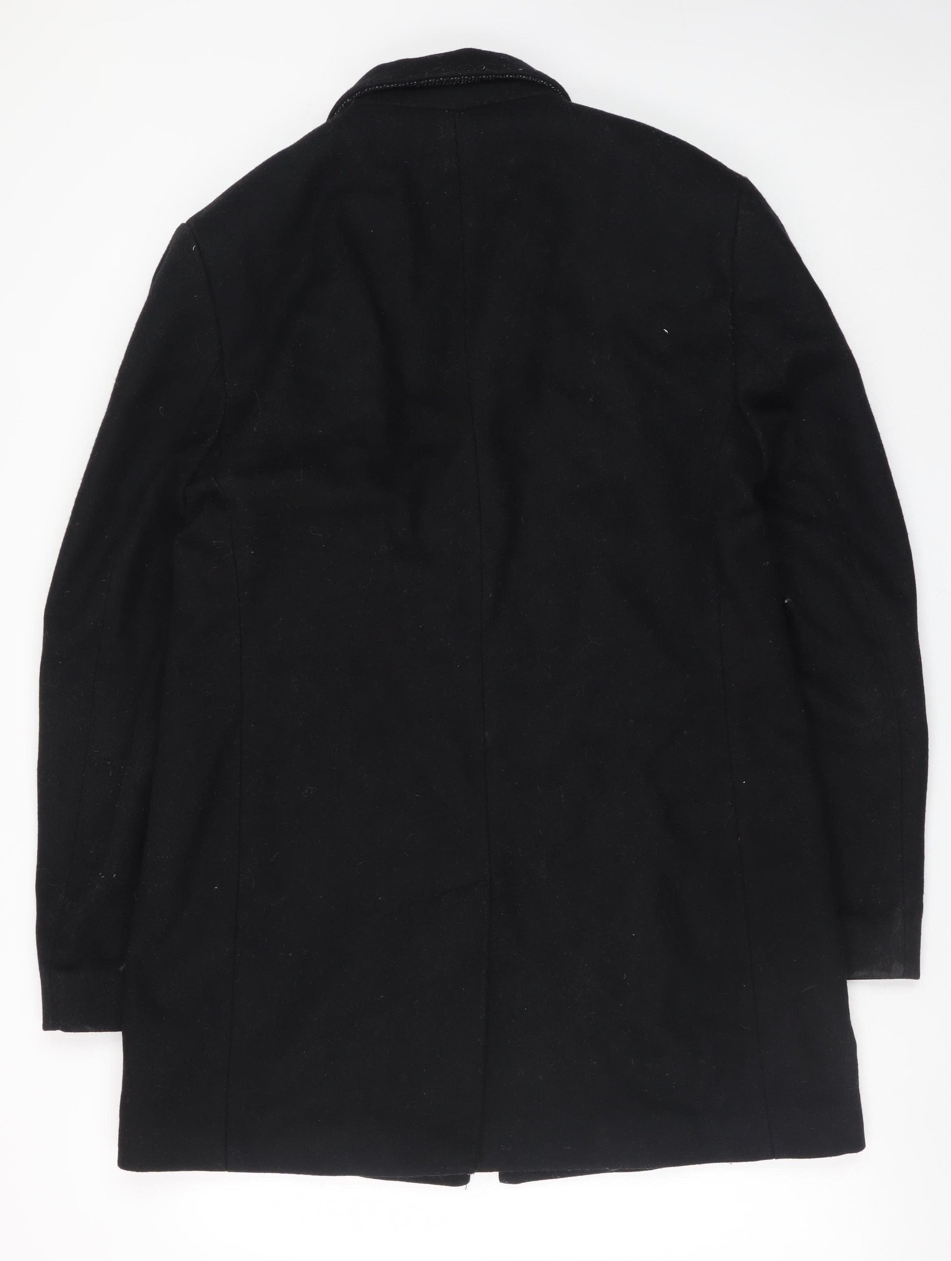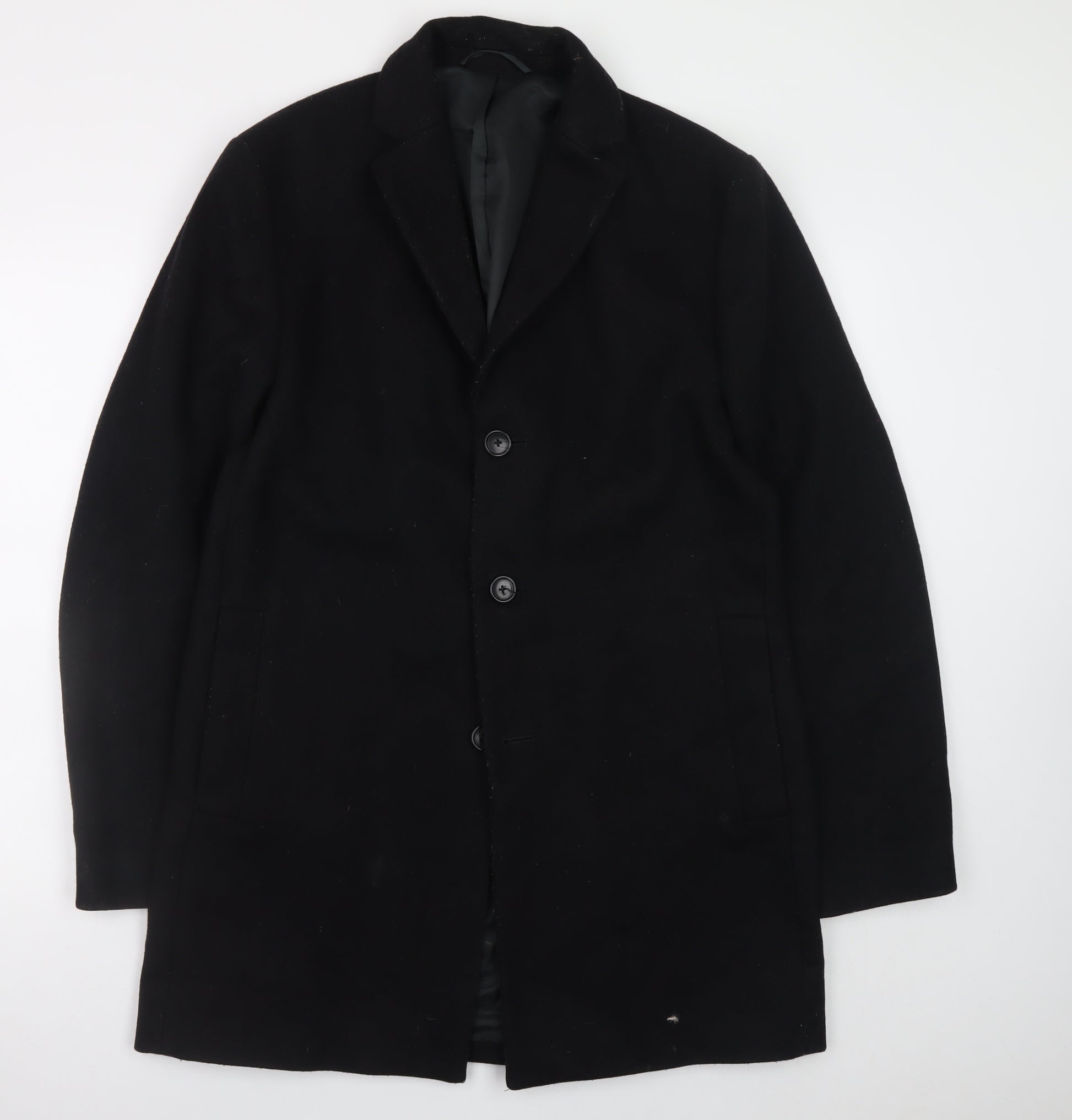 Next Men's Black Wool Blend Overcoat Medium Smart Classic Style