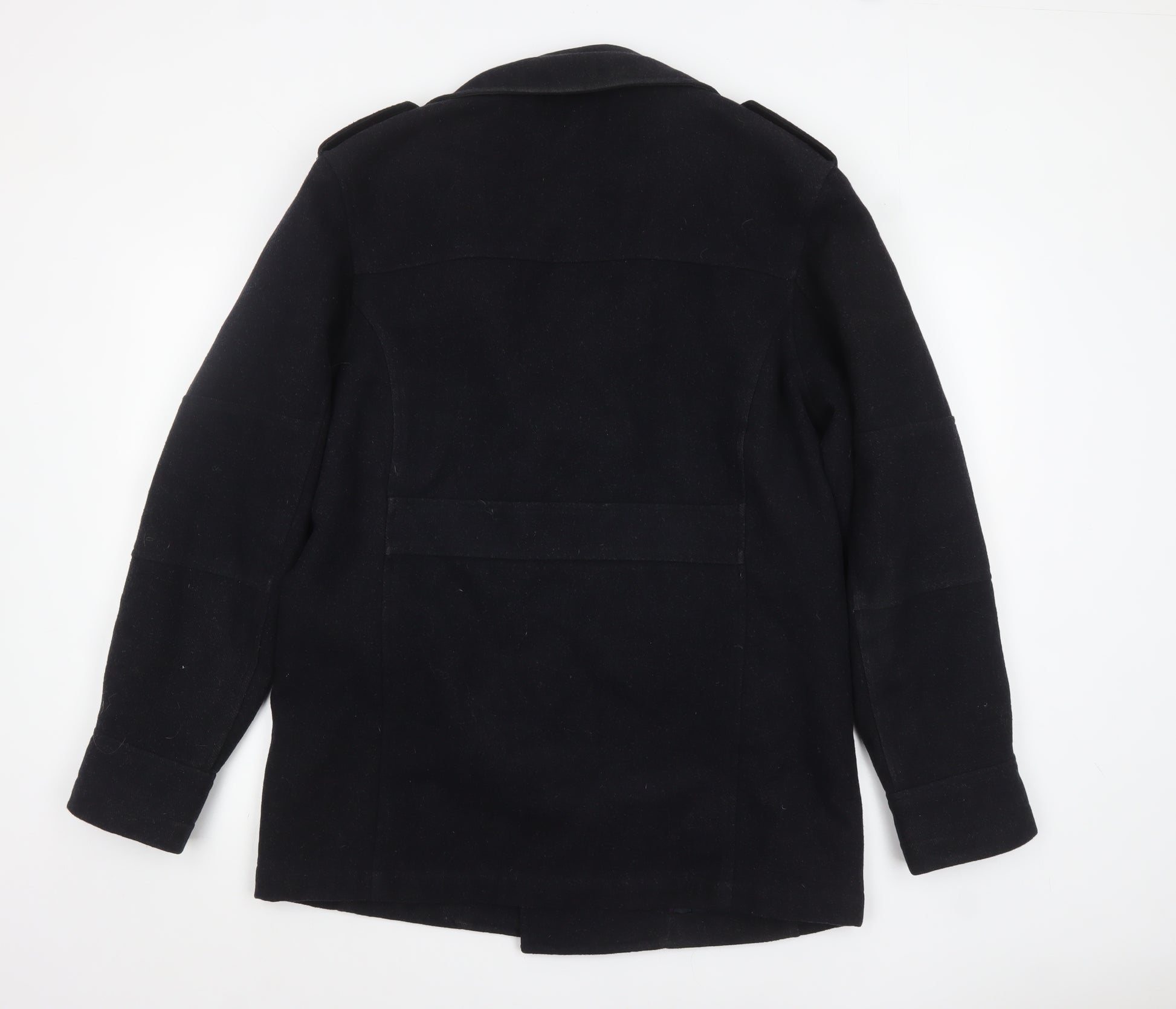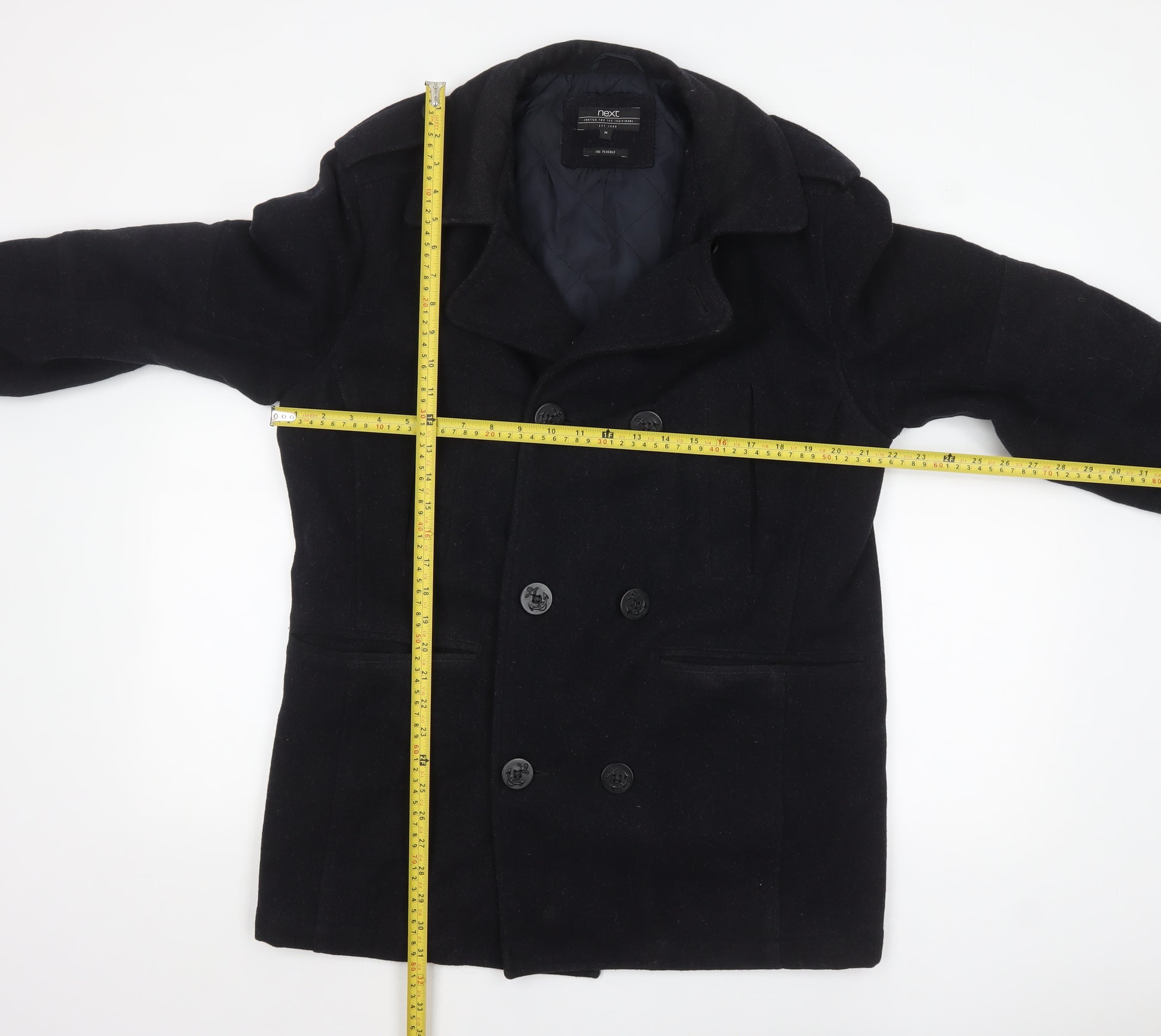 Next Men's Black Wool Blend Pea Coat Jacket Medium