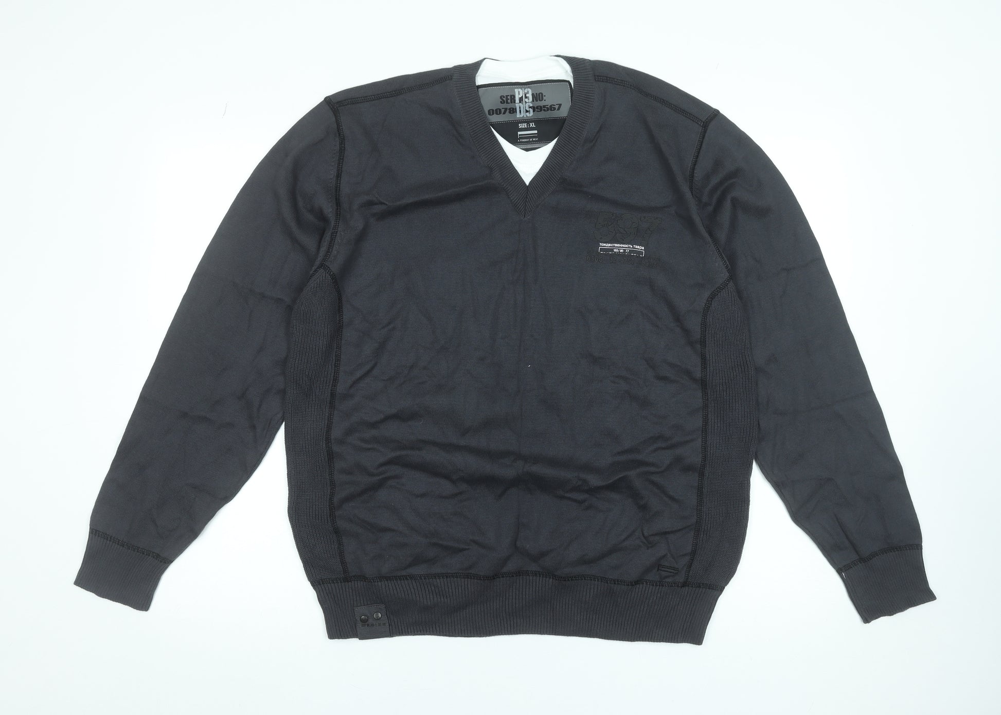 Next Men's Black XL V-Neck Cotton Pullover Jumper Classic Knit