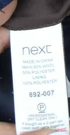 Upgrade your formal wardrobe with this sophisticated men's blue blazer from Next, tailored to perfection for a stylish look. Made from a quality blend of 50% wool and 50% polyester, it offers a balance of warmth and durability, perfect for the changing seasons of autumn and spring. This single-breasted blazer features a modern two-button front and a notch lapel for a classic yet contemporary appeal. Crafted with precision, the blazer has a short jacket length that offers a streamlined fit, ideal for complementing your business or formal attire. The double-vented back allows for ease of movement, while the four-button sleeve detailing adds a touch of elegance. This versatile piece is lined with 100% polyester for a smooth finish. Whether for business meetings or social events, this blazer promises to give a polished and sophisticated look. Maintain the blazer's pristine condition with dry clean only care. It is in excellent condition, ensuring a fresh and professional appearance every time. Add this essential to your collection and experience the fusion of style and comfort it offers.
