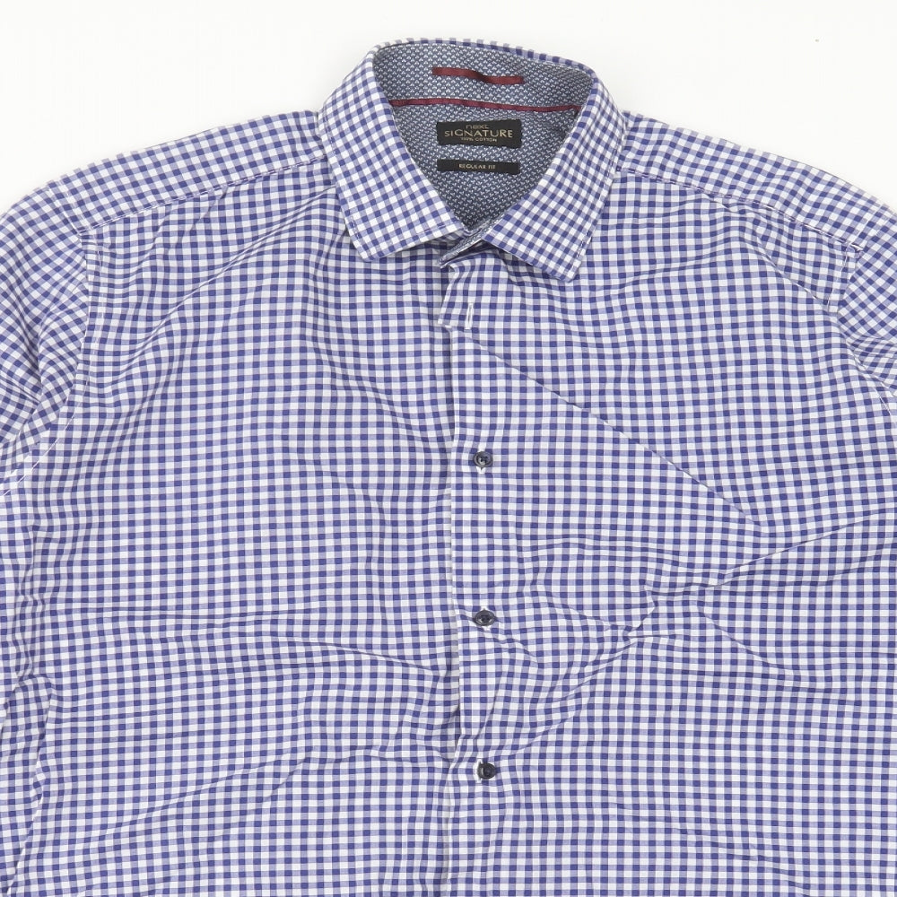Mens Blue Check Cotton Dress Shirt Size 16 Collared Button