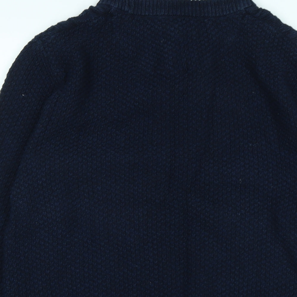 Mens Blue Collared Cotton Blend Pullover Jumper Size M Long Sleeve
