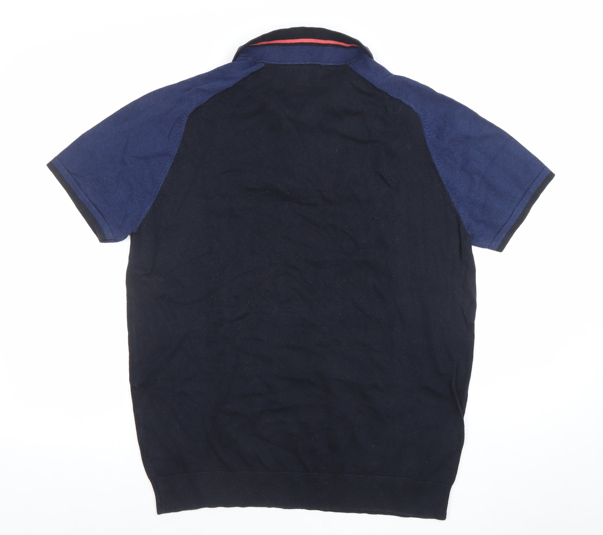 Next Men's Blue Colourblock 1/4 Zip Cotton Polo Shirt Size L