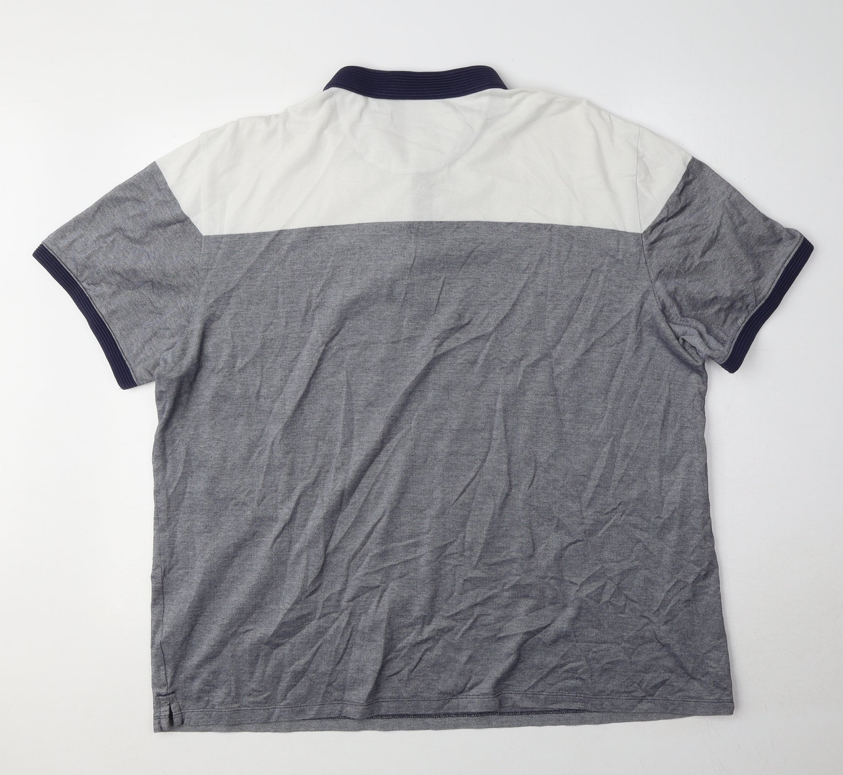 Mens Blue Colourblock 100% Cotton Polo Size 2XL Collared Button