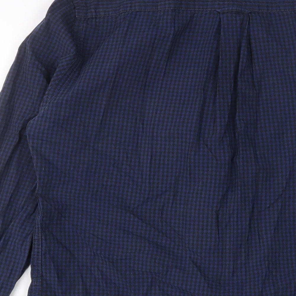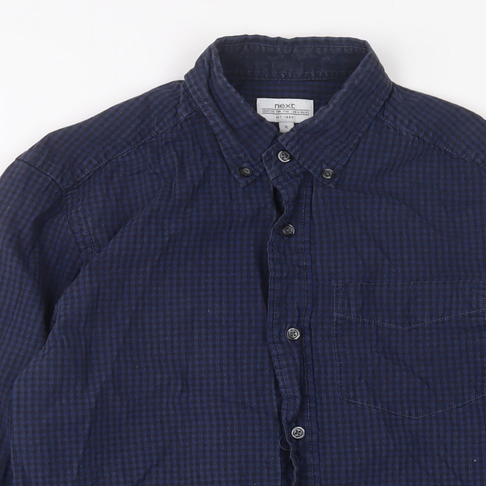 Mens Blue Cotton Button-Up Size S Collared Button