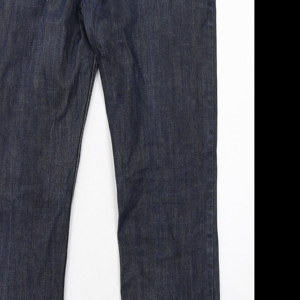 Mens Blue Cotton Straight Jeans Size 32 in Regular Zip - Loose Fitting